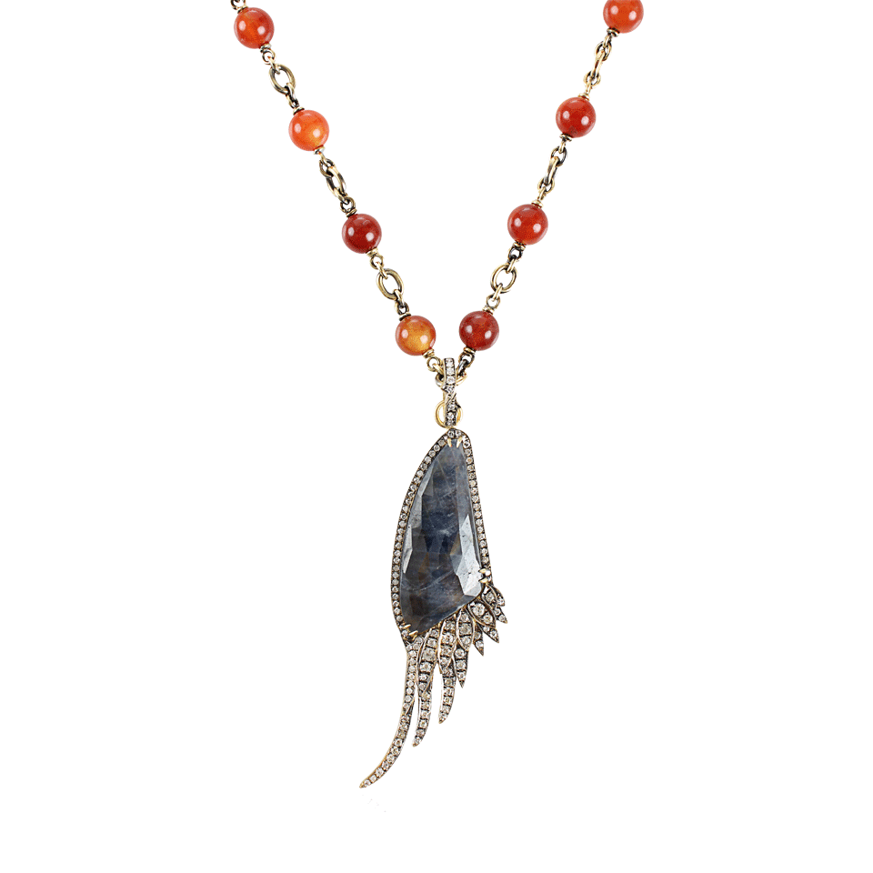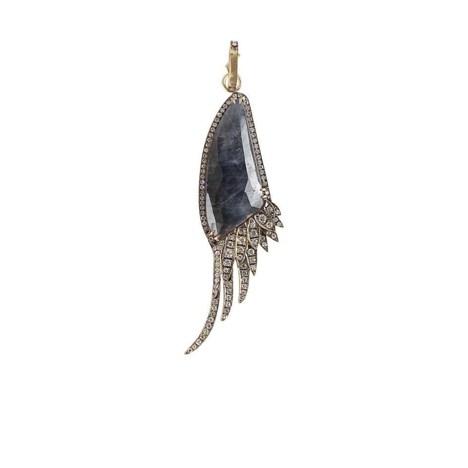 Flap your wings and soar to new fashion heights with Sylva & Cie’s diamond sapphire wing pendant.