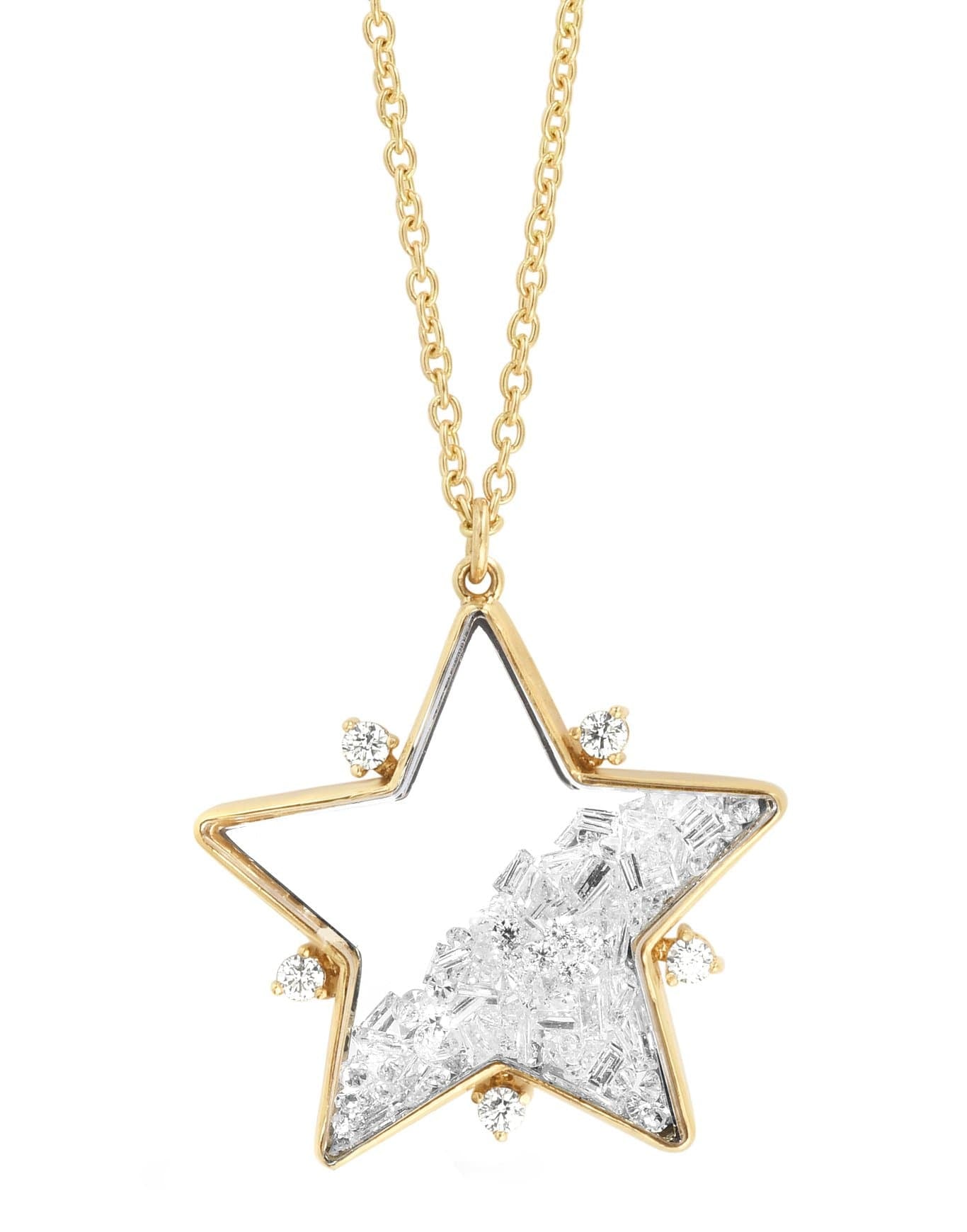 Moritz Glik diamond star shaker pendant necklace with white sapphire crystal from the Apollo Collection.