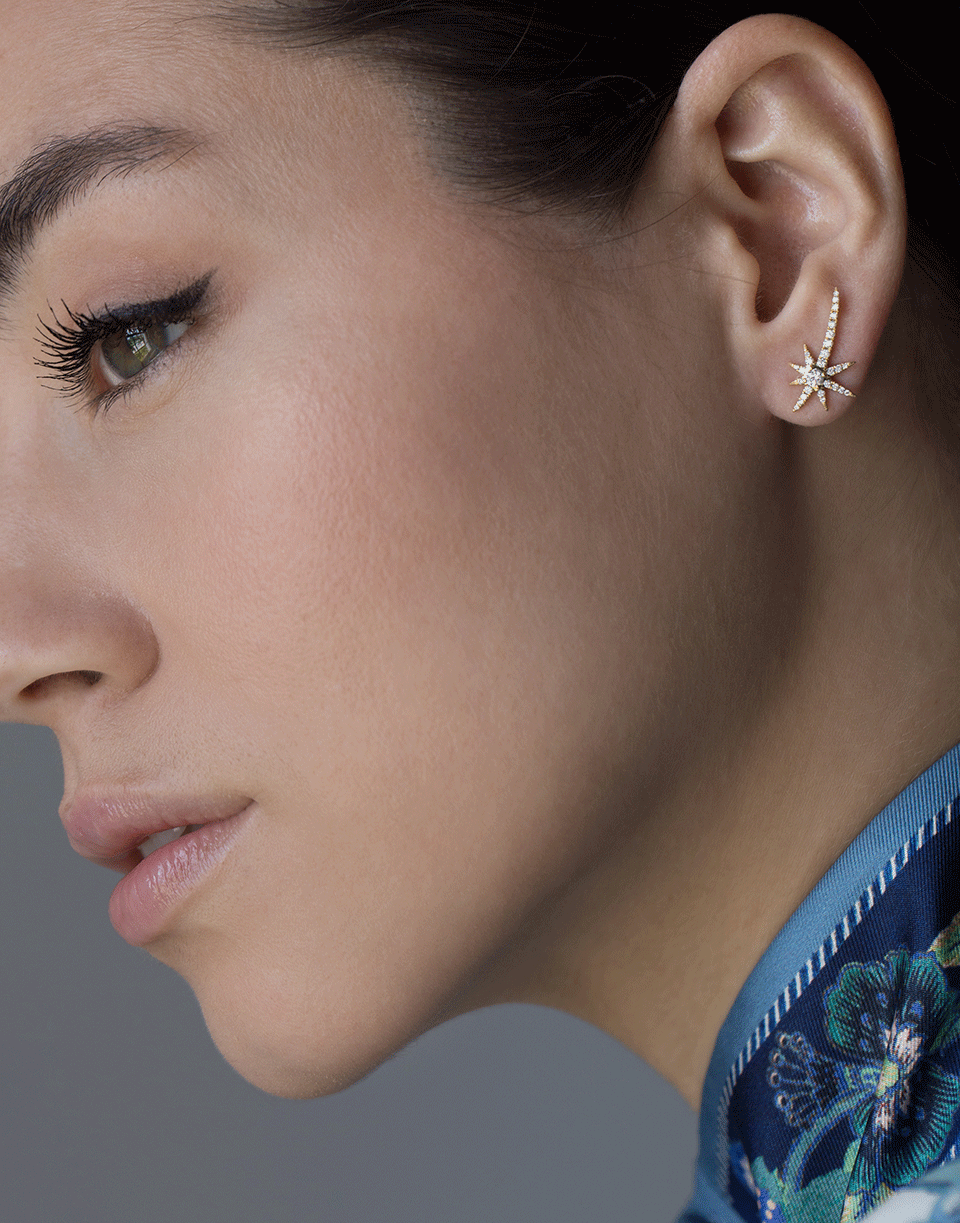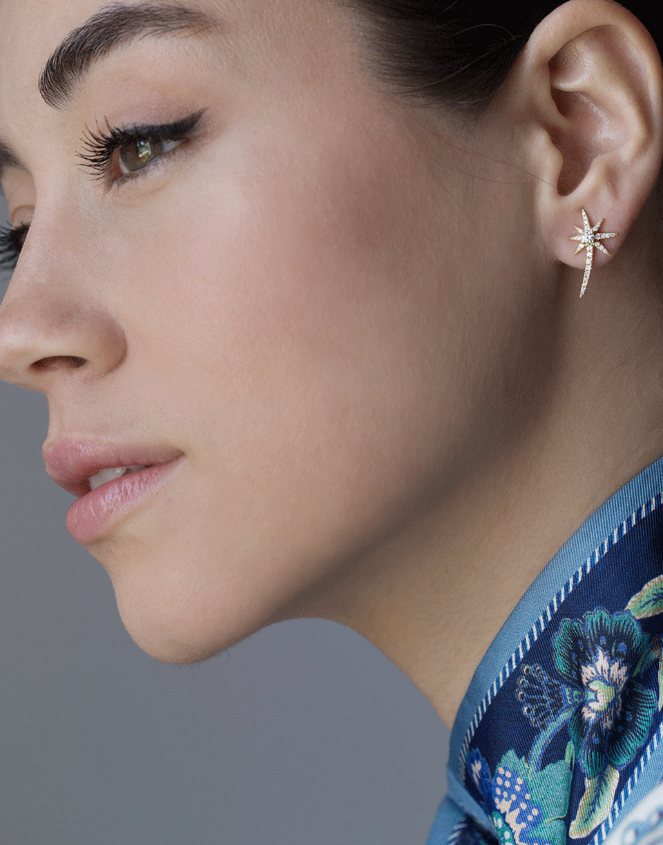 Graziela diamond shooting sunburst earrings. For pierced ears.
