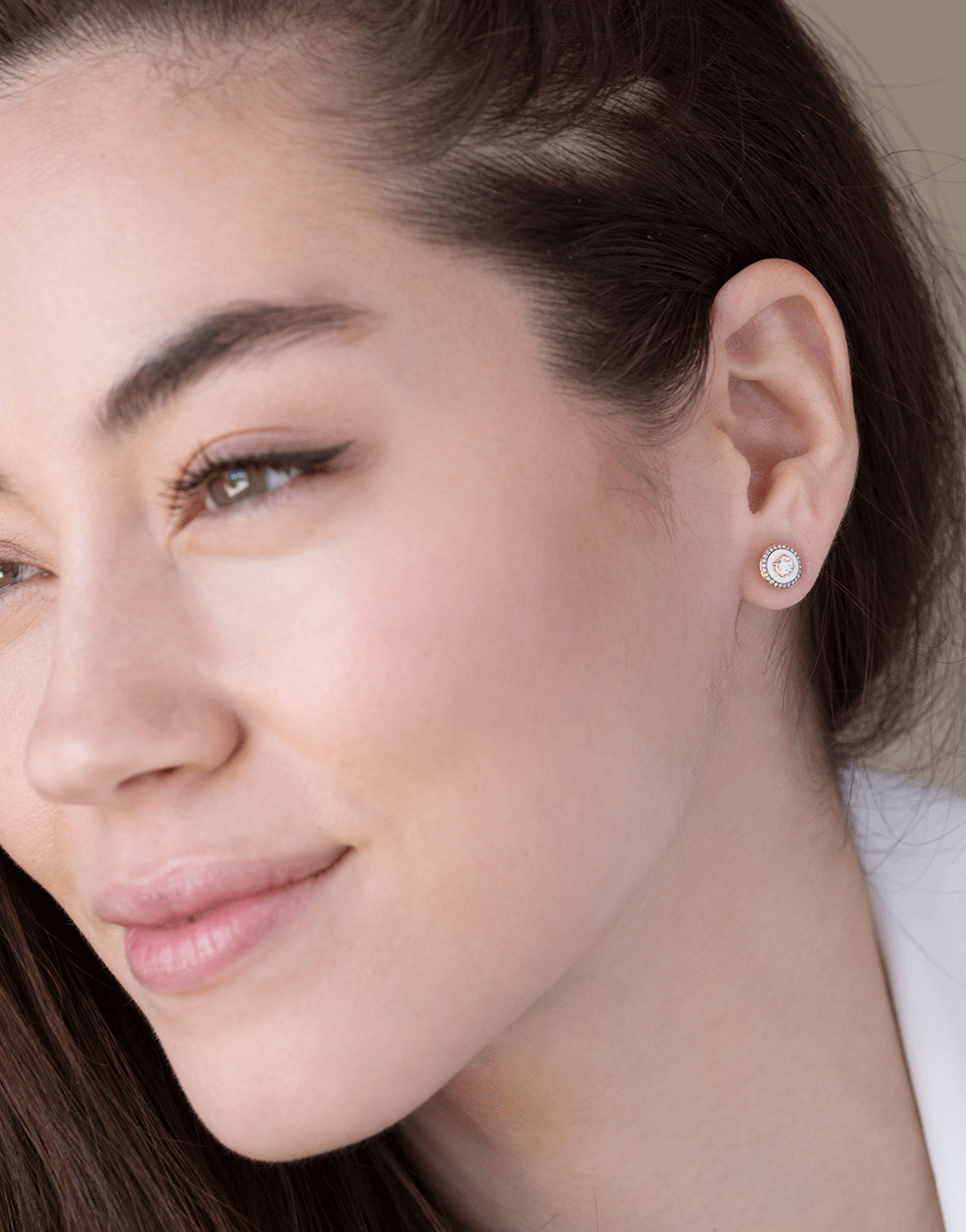 Selim Mouzannar white enamel studs with diamonds.