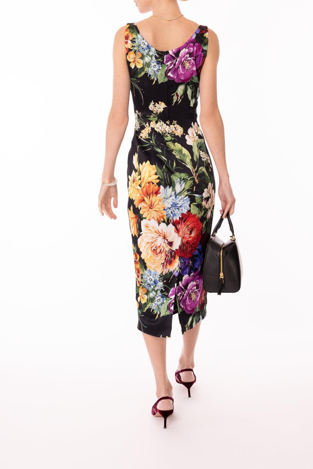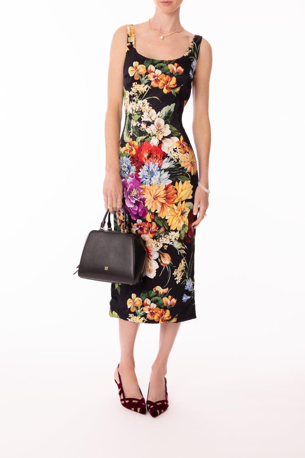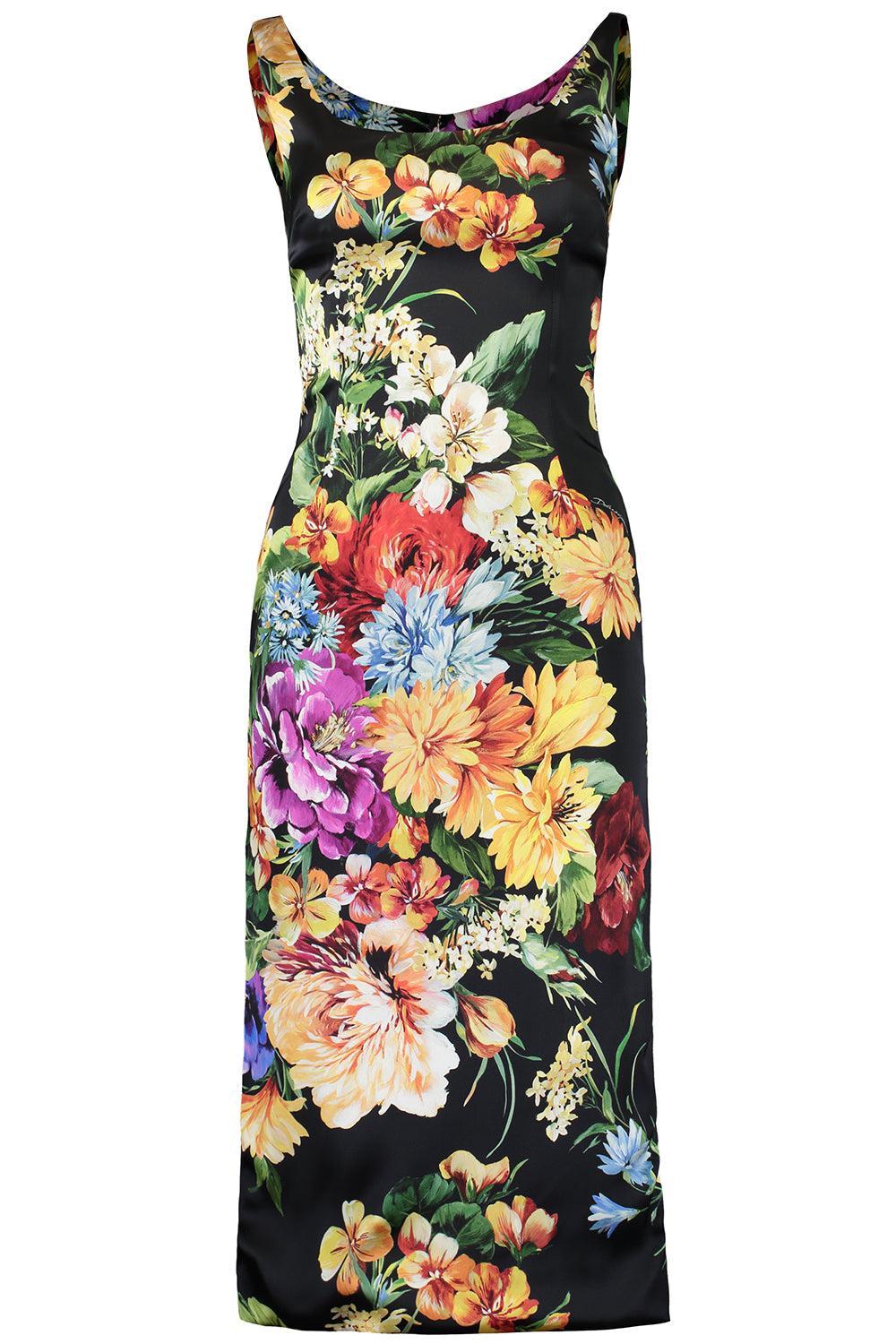 Dolce & Gabbana tubino dress in black fiori print.