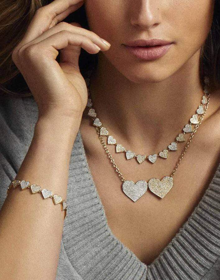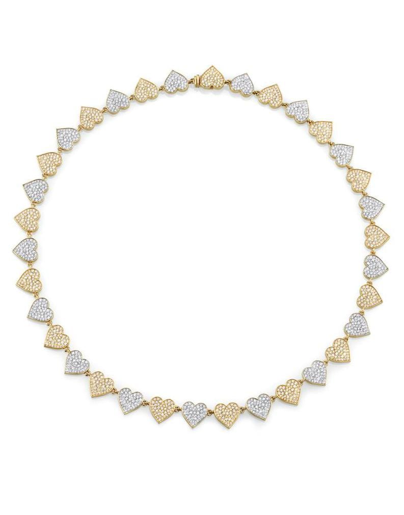 Sydney Evan doudble heart eternity necklace. Two-tone 14k gold and pave diamond heart eternity necklace.