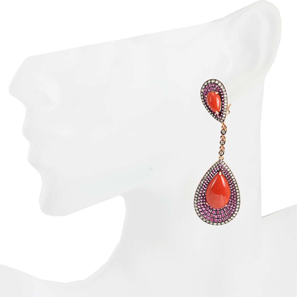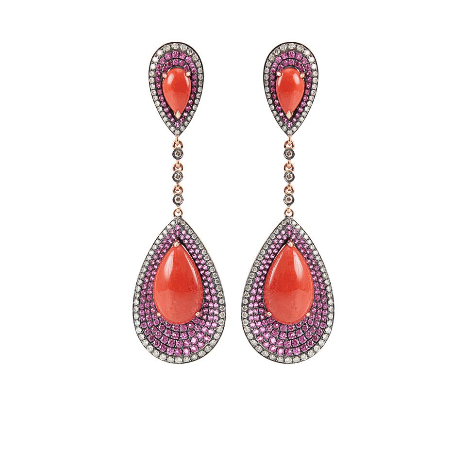 Your color is improving. Take a double dose of decadent with these Wendy Yue double teardrop coral earrings emblazoned with diamonds and pink sapphires. You will be pleasantly surprised at how healthy your jewelry wardrobe looks.