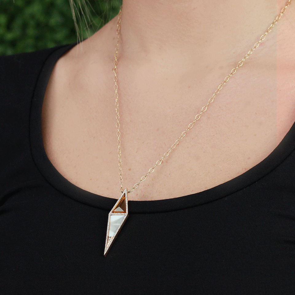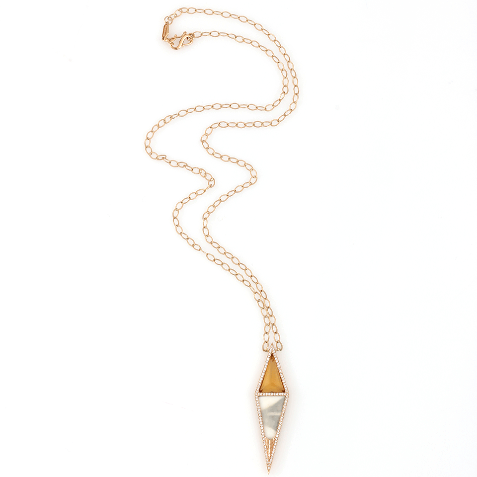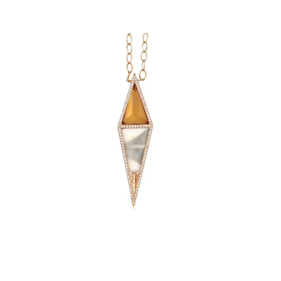 Double Triangle Necklace With Grey Ombre Fossilized Walrus Ivory, Citrine, And Diamonds From Monique Pean