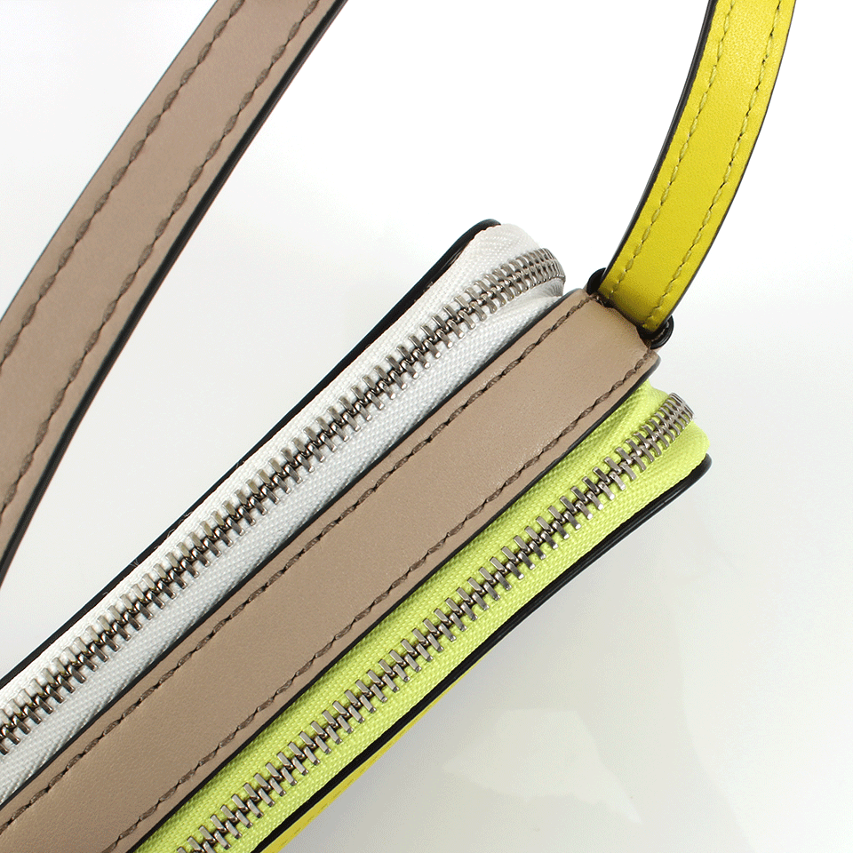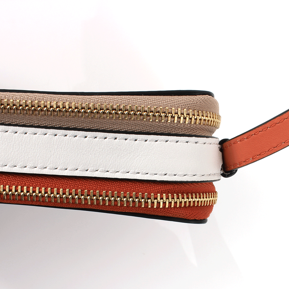 Tri-Color With Double Zip Top Closures And Two Compartments With Gray Leather And Twill Lining