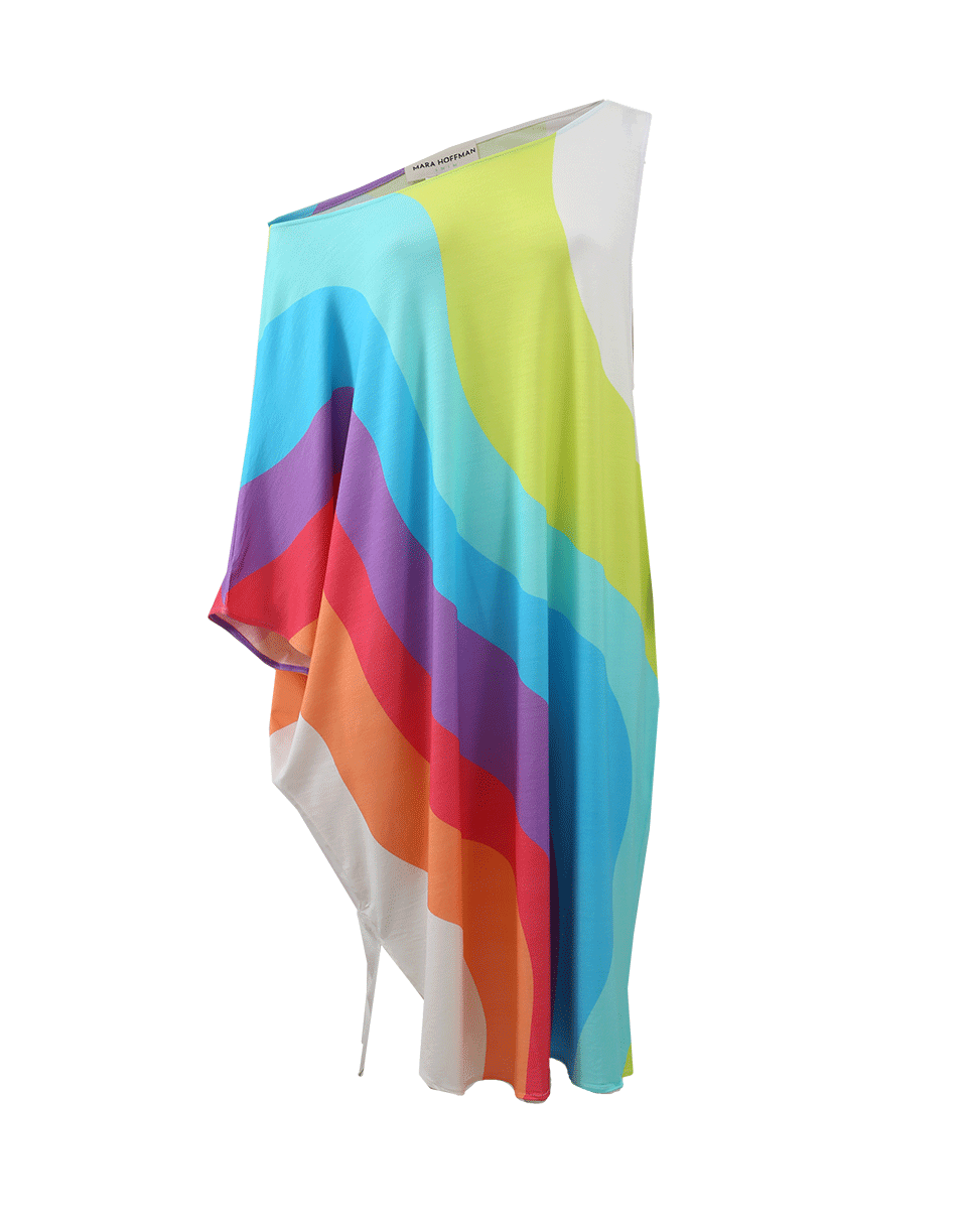 All-Over Rainbow Print With One Side Slit, Loose-Fitting Silhouette And Knee-Length Cut