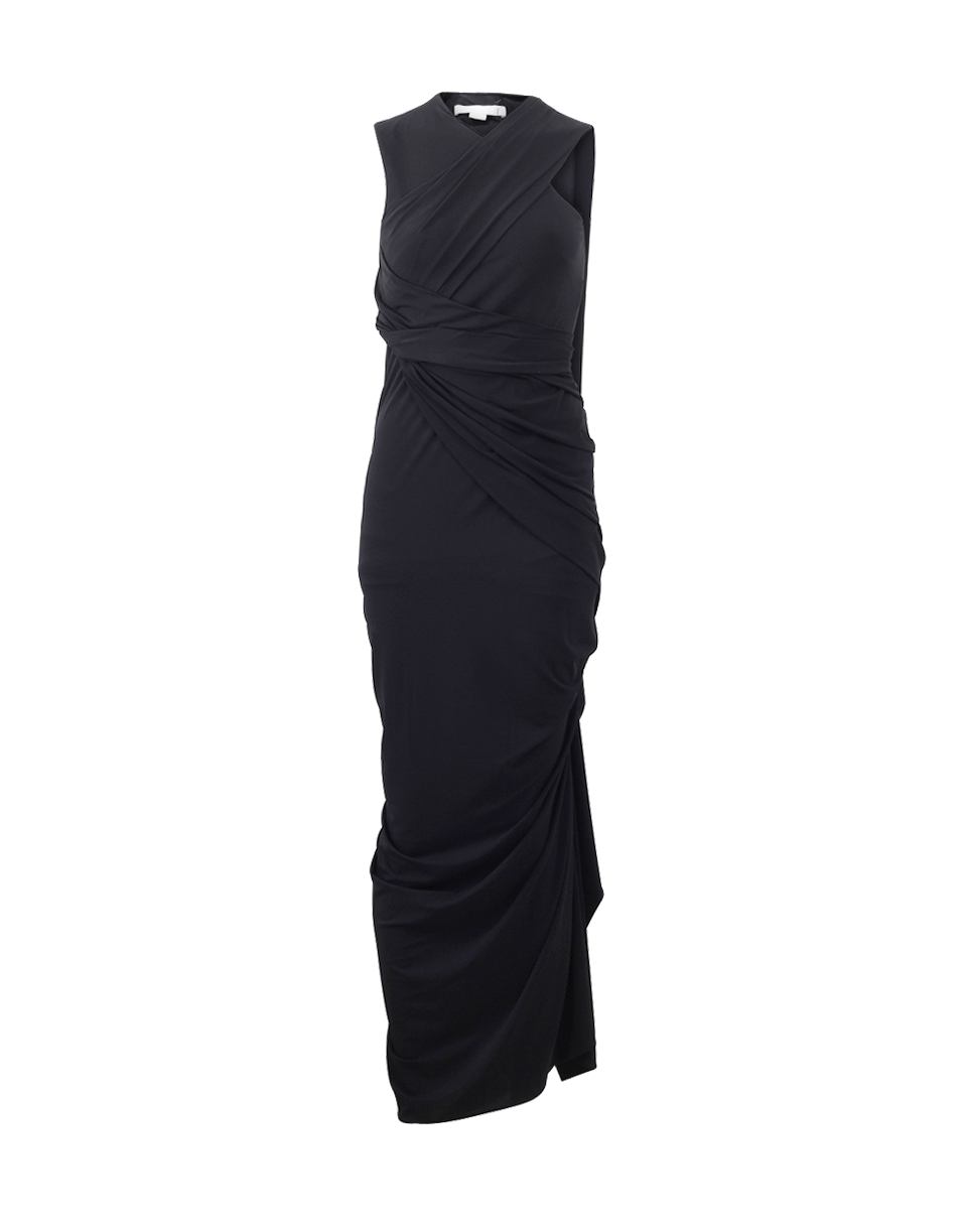 Stretch Design With Back Cutout And Long, Draped Back Detail, And Floor-Length Cut