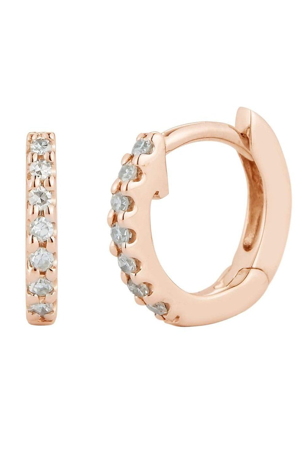 Add a pair of classic huggies to your jewelry collection. These by Dana Rebecca feature sparkling round diamonds set in 14k rose gold with snap back closures.