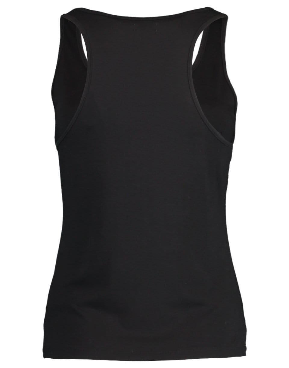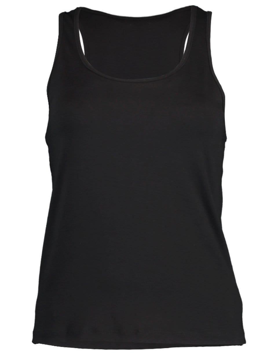 Black Drew racerback tank from L'Agence featuring a regular fit, sleeveless cut, scoopneck, racerback, and straight hem.