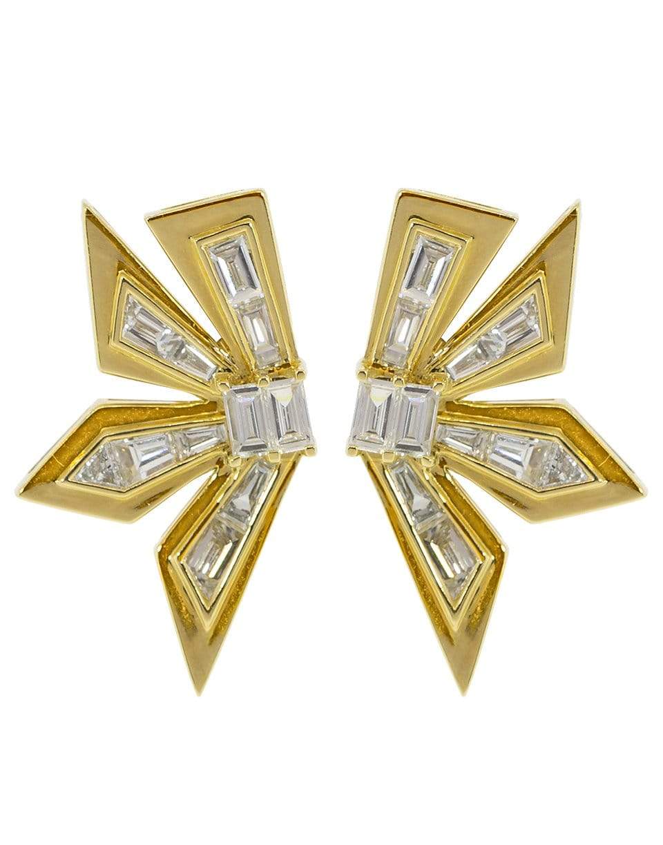 Stephen Webster Dyanamite Cascade diamond ear cuffs with tapered baguette and trillion cut white diamonds.