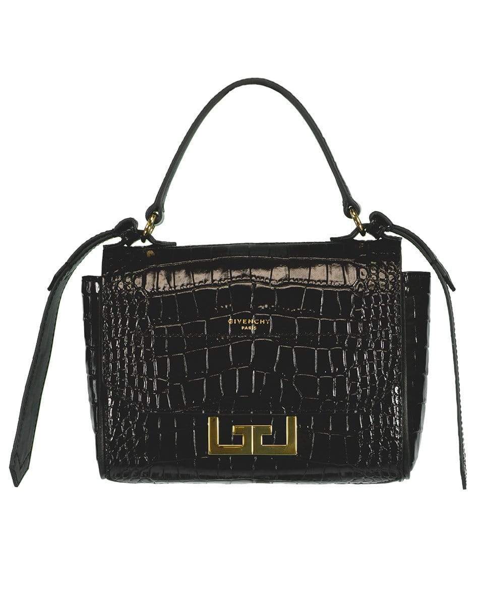 Givenchy top handle Eden handbag with embossed crocodile outer, a magenetic closure, and interior slip pocket.