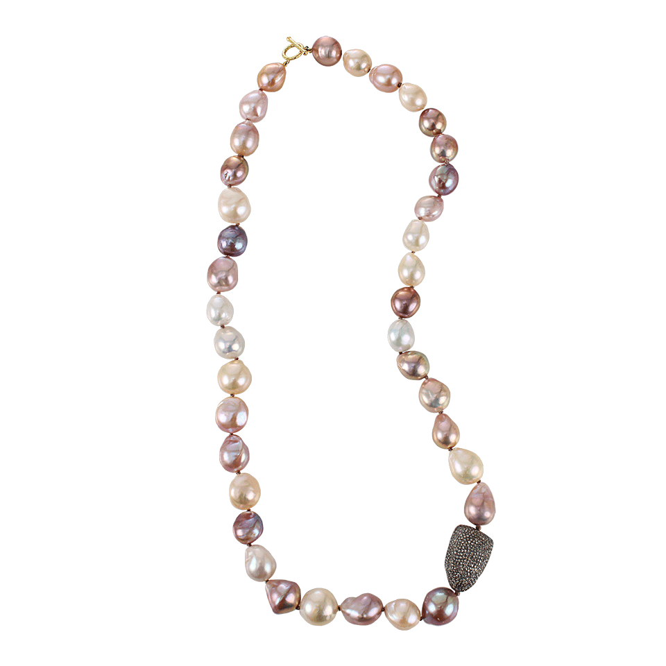 Drape your neck in a deep sea treasure with Jordan Alexander’s Edison pearl necklace with pave diamond nugget.