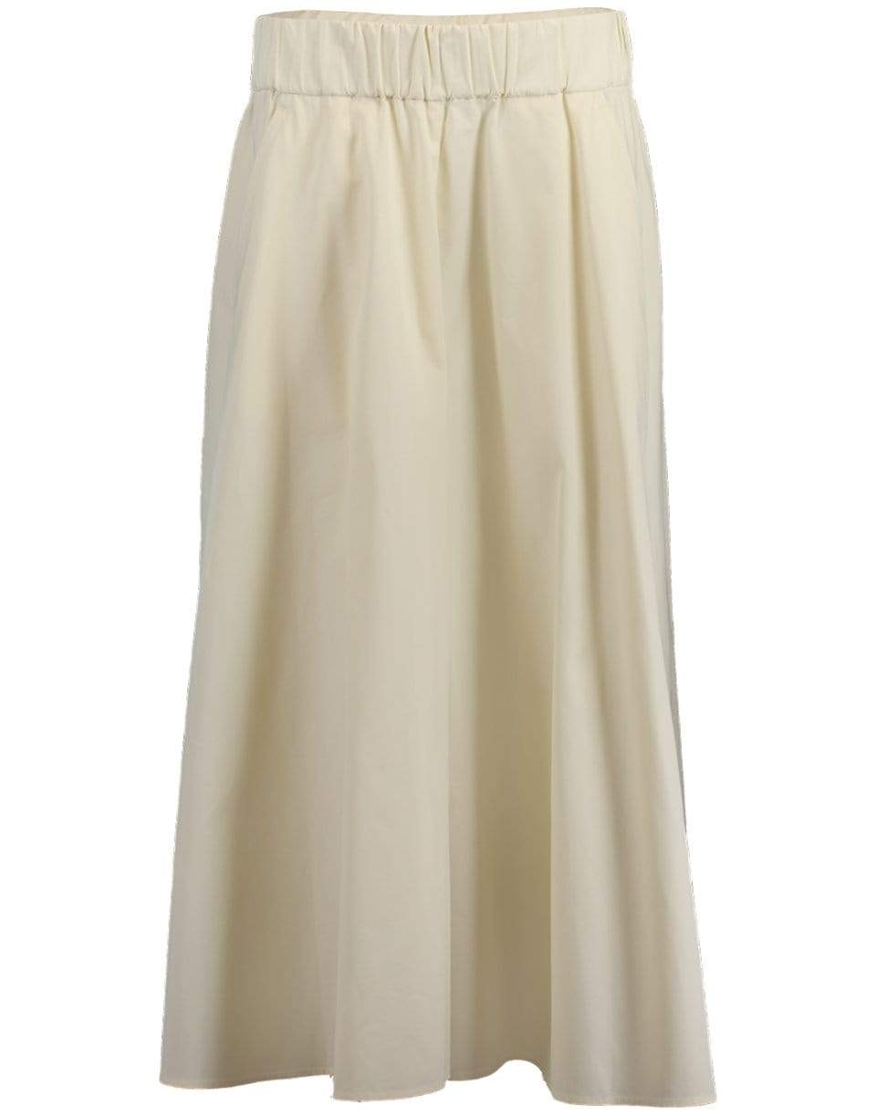 Aspesi natural elastic wide leg skirt pant with a mid-rise, cropped fit, side pockets, and a pull on style.