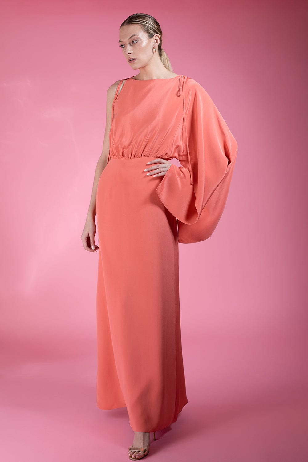 Alexis elba one sleeve maxi dress in calypso coral.