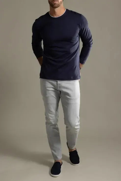 Eleventy crewneck long sleeve in blue / light gray.