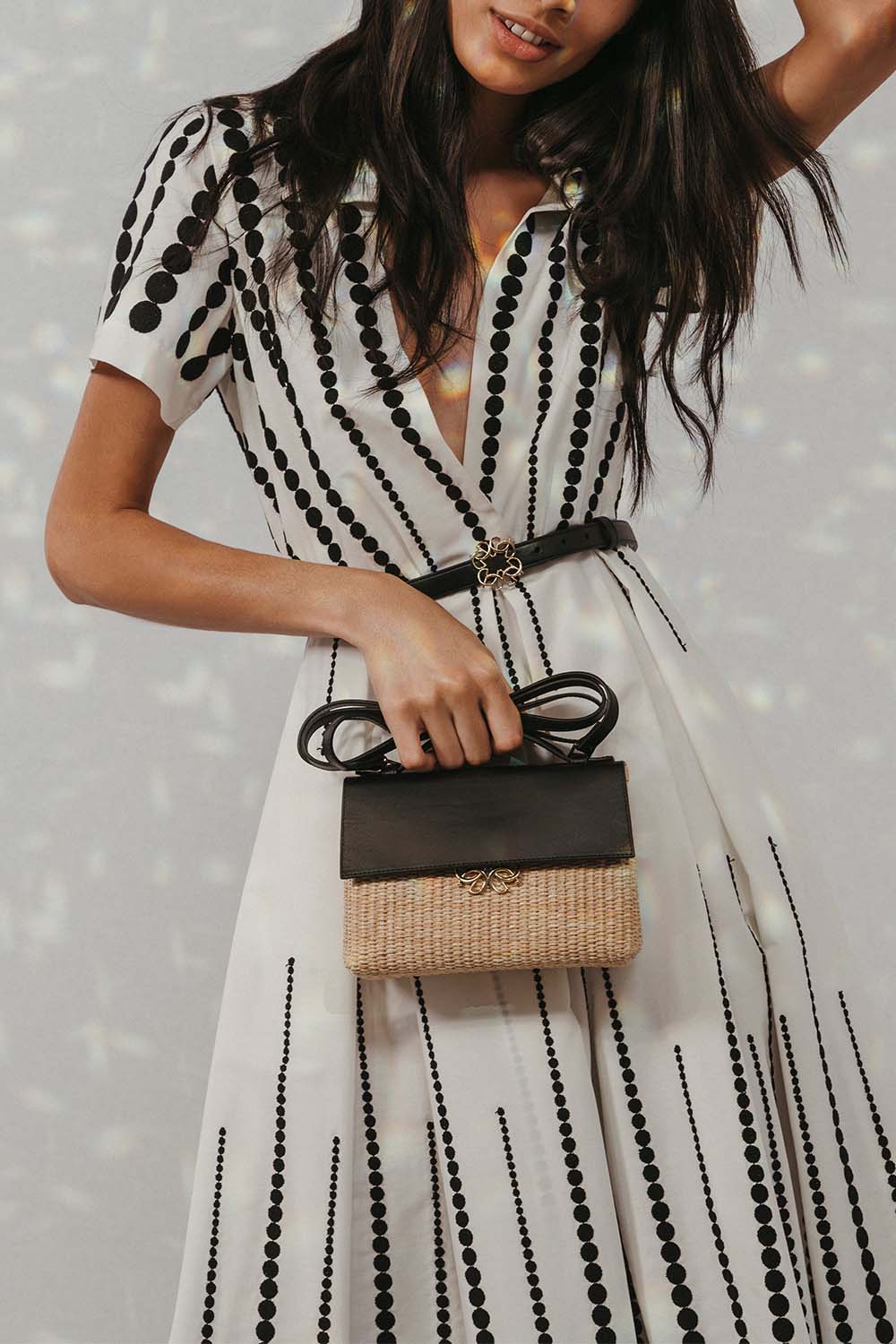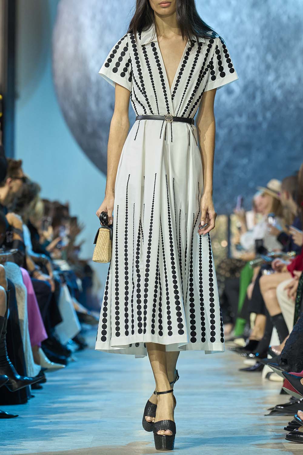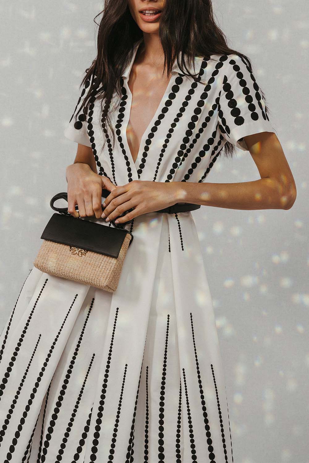 Elie Saab embroidered midi dress in black and white.