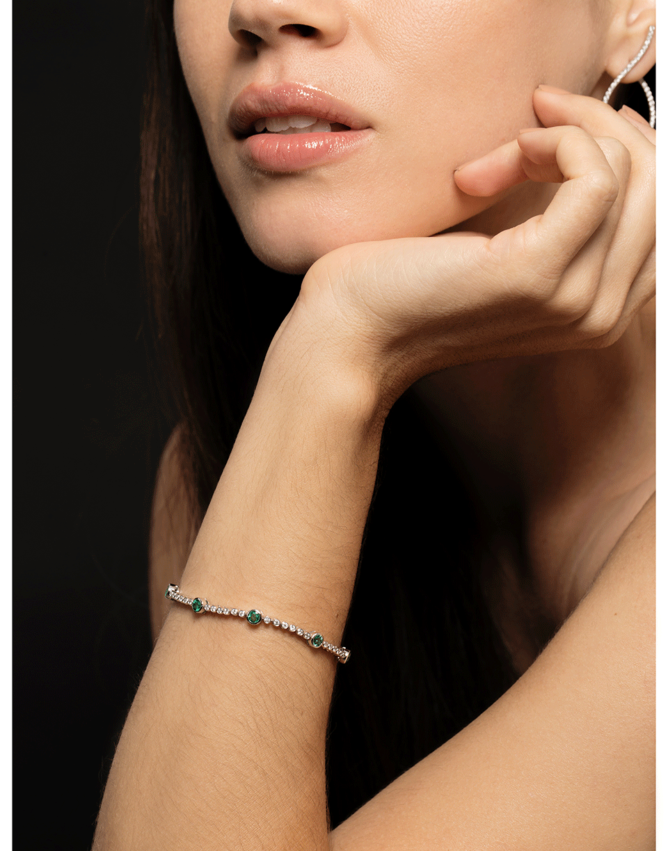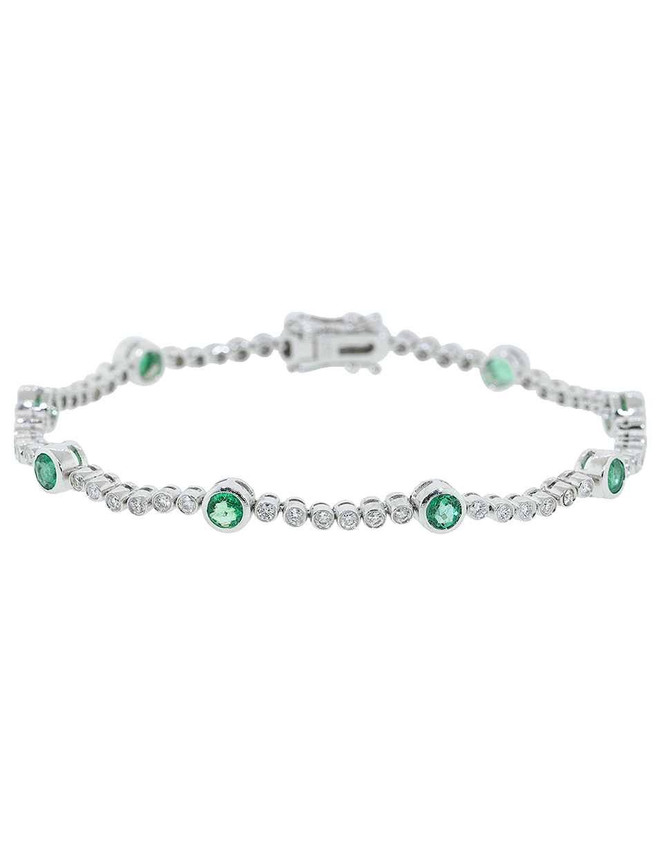 Bezel set emerald and diamond bracelet from Graziela with a clasp closure.
