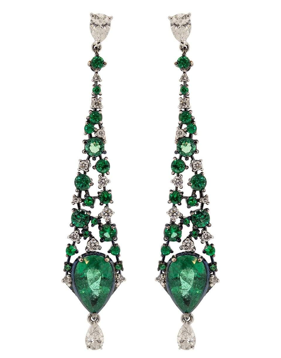 Mariani diamond and emerald drop earrings set in 18k white gold. For pierced ears.