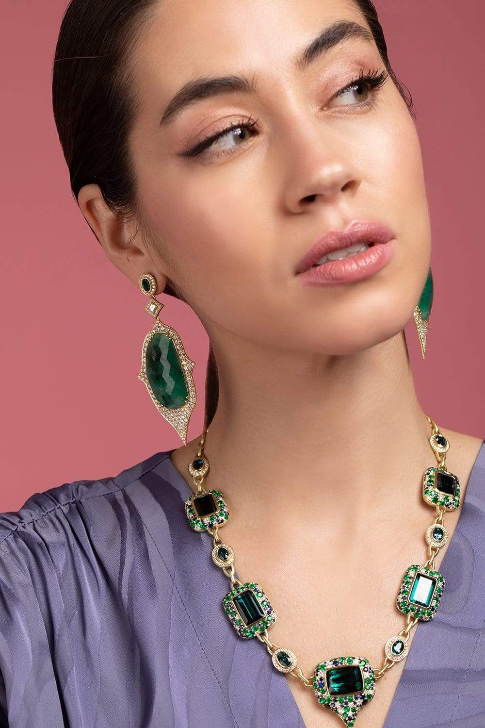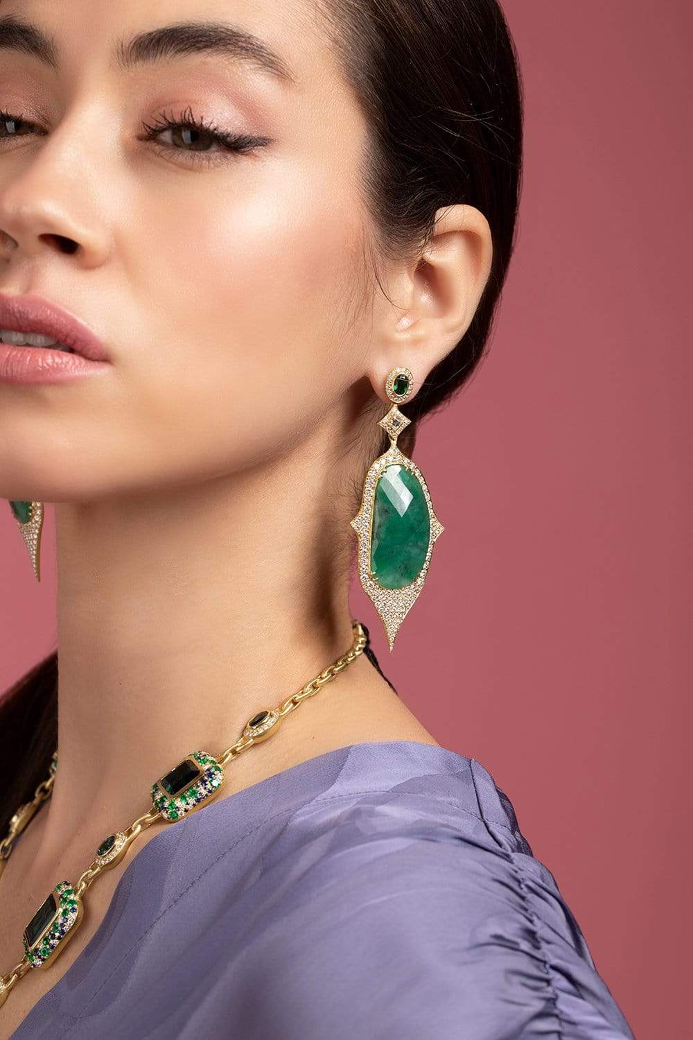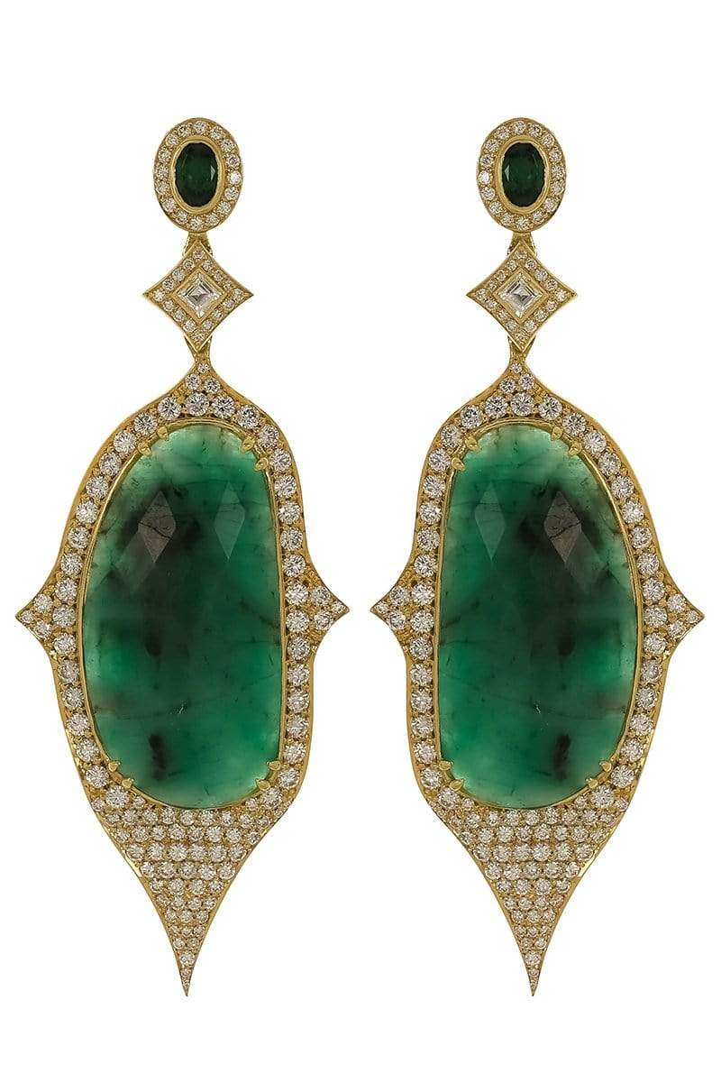 Jared Lehr emerald, tsavorite and diamond earrings.