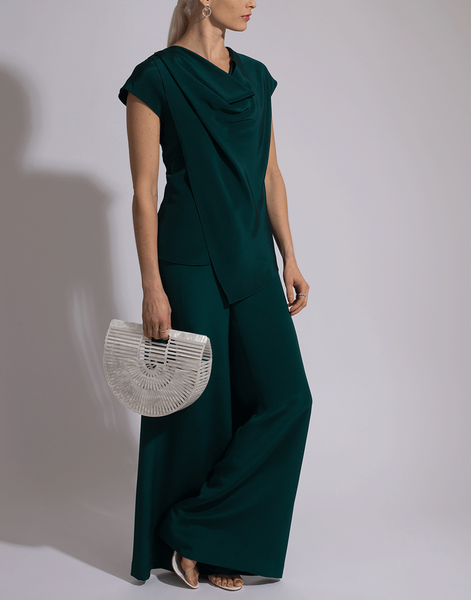 Cowl Neckline With Back Zip Closure And Long Sleeves