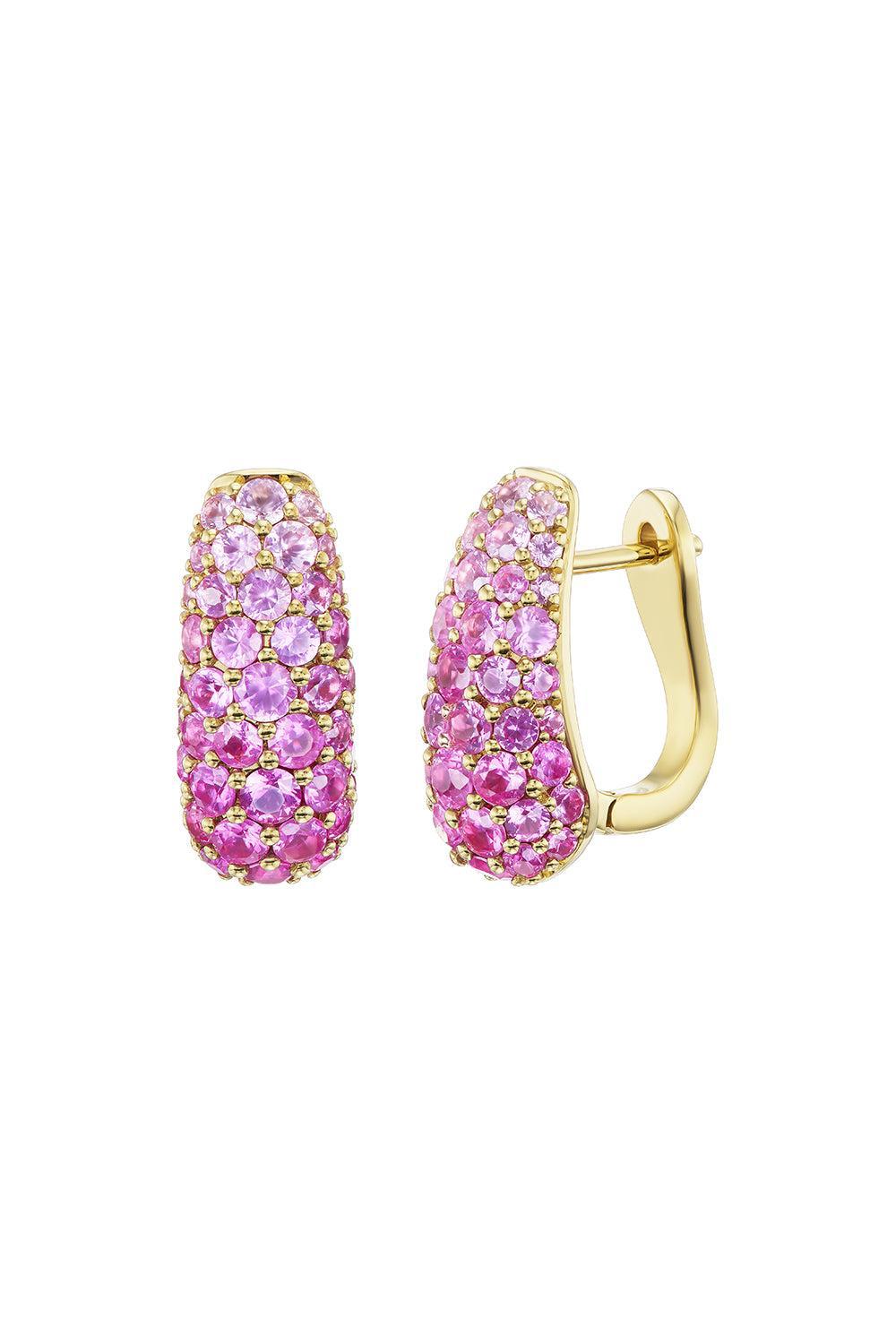 Emily P Wheeler pink sapphire holly hug earrings in yellow gold.