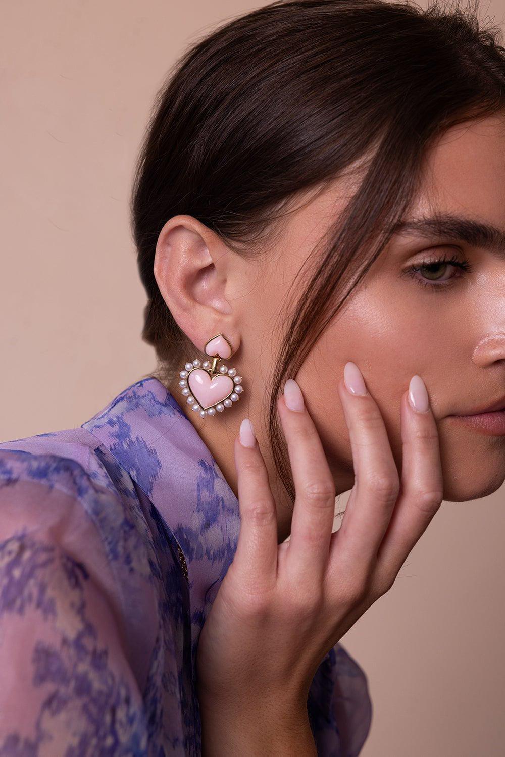Emily P Wheeler queen of hearts earrings in yellow gold.