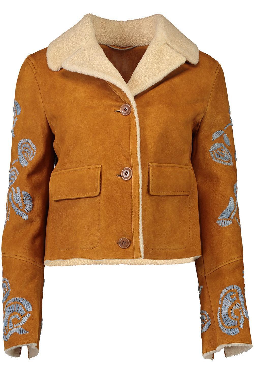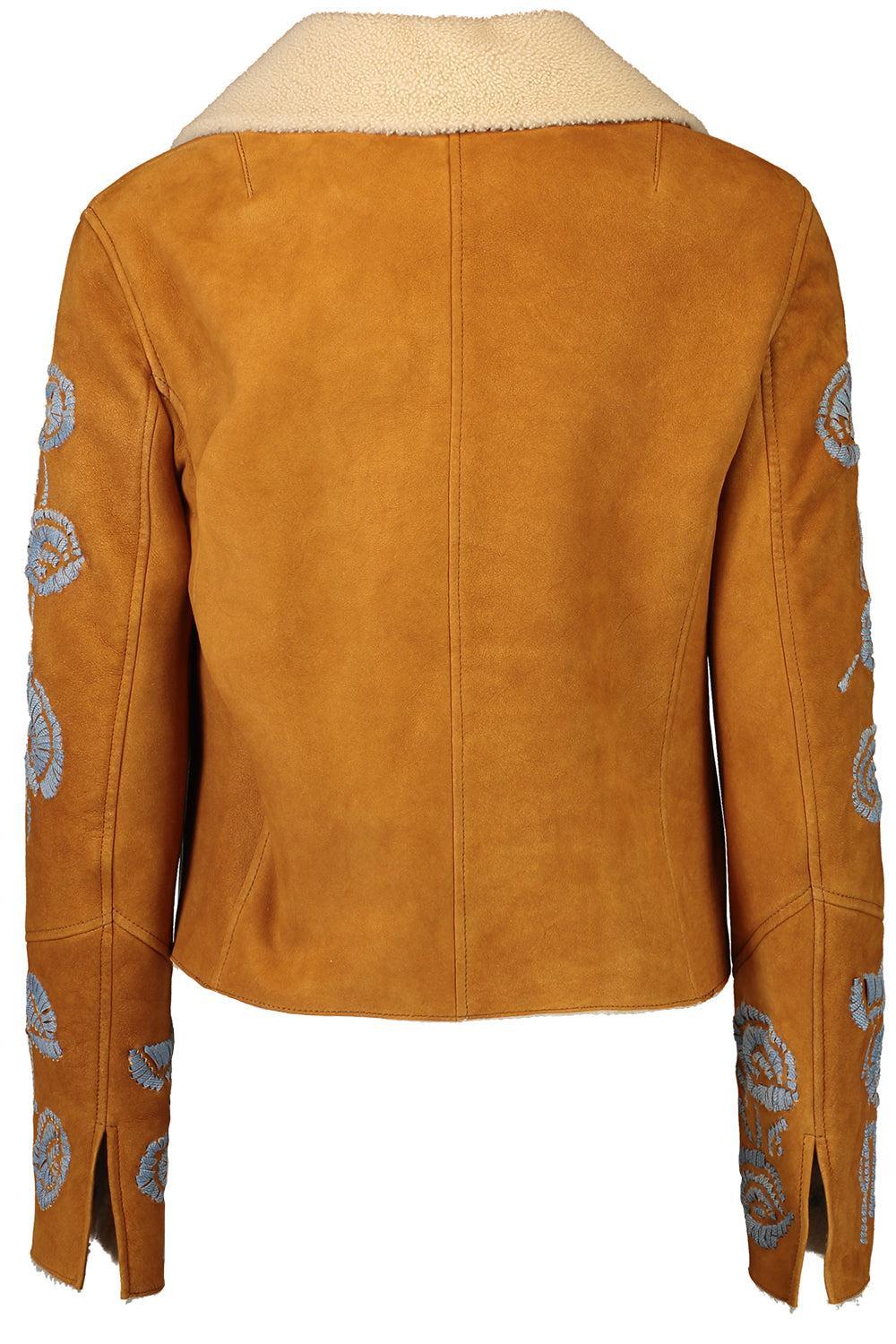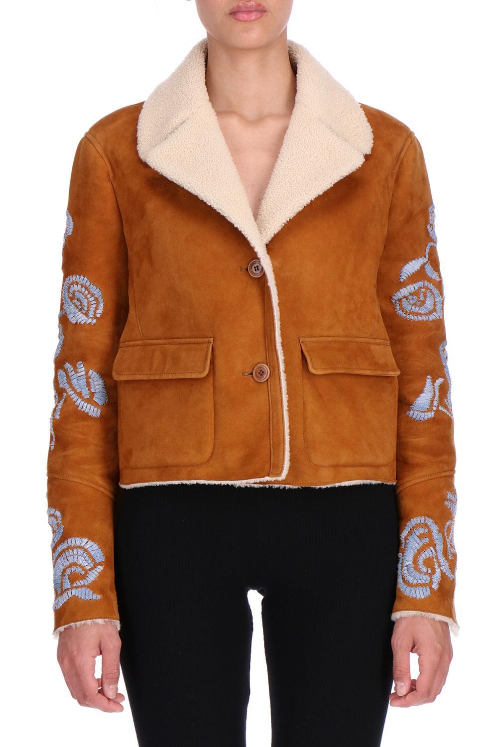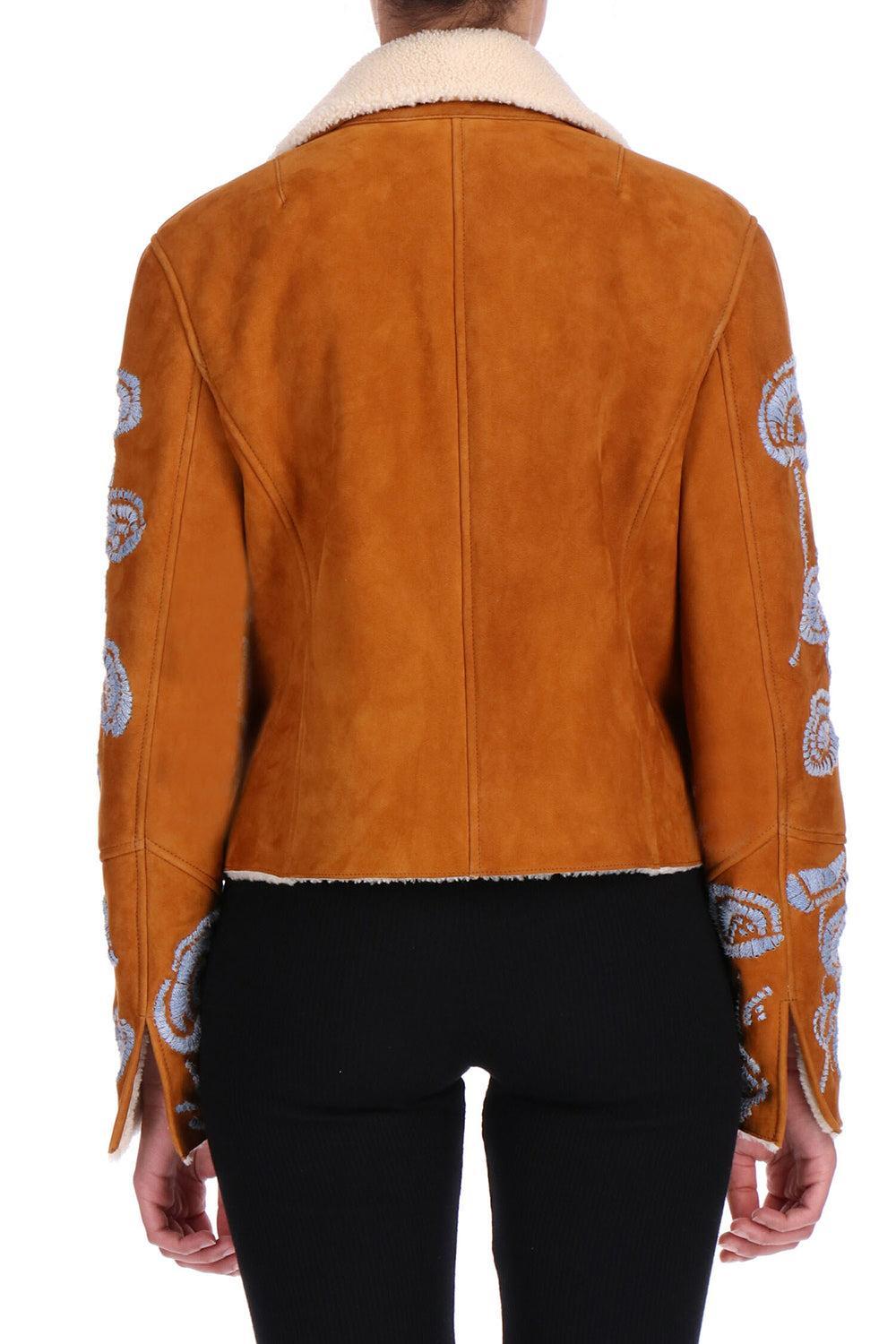 Ermanno Scervino embroidered jacket in castagna/pelo bianco.