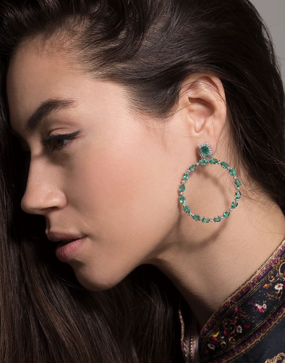 Carla Amorim esperanca emerald and diamond earrings. For pierced ears.