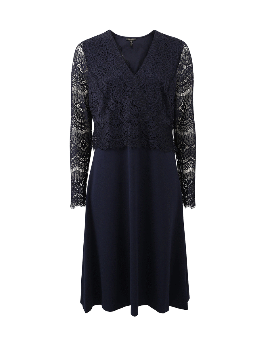 Lace Upper Overlay With Lace Midriff Yoke, Knee Length Cut