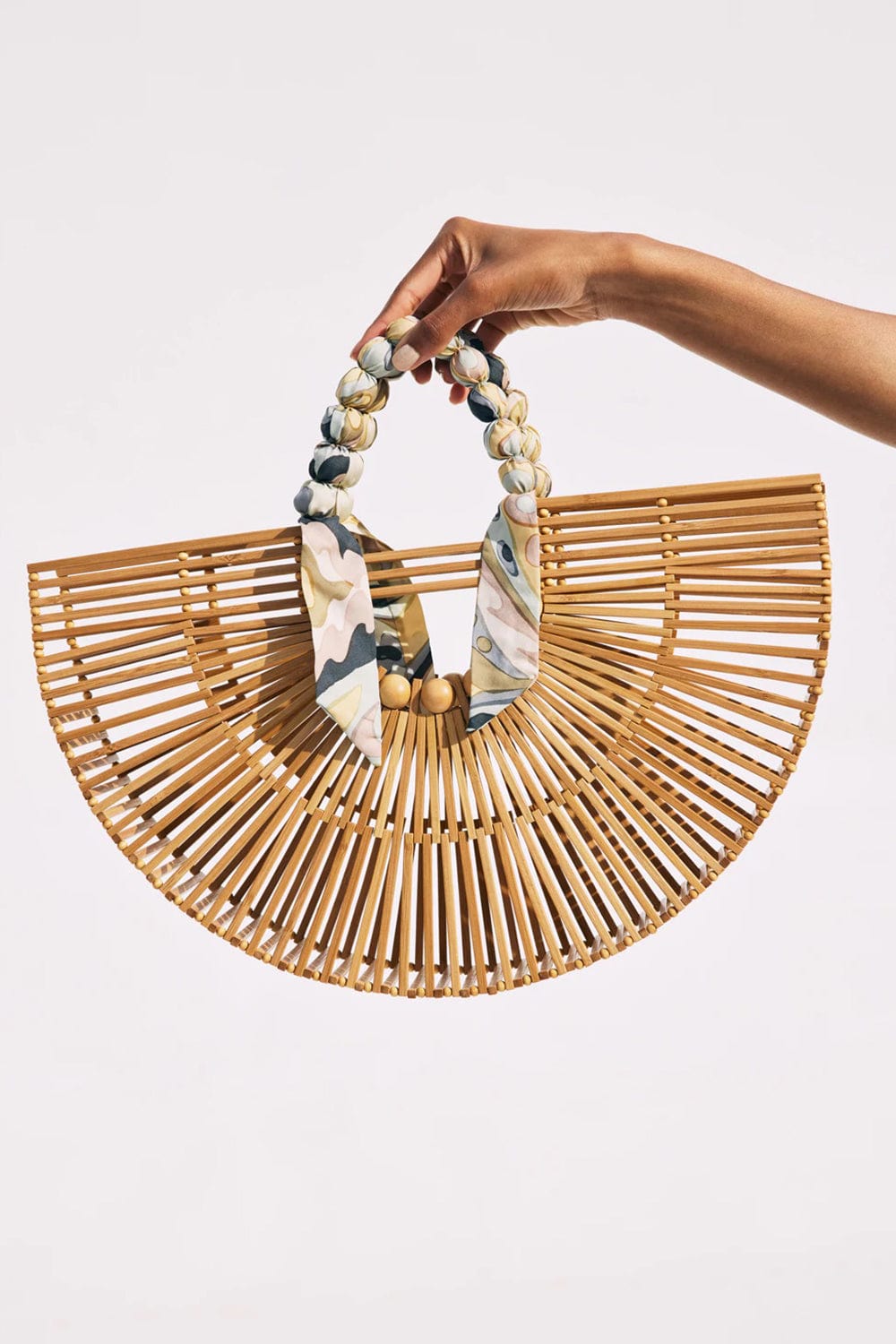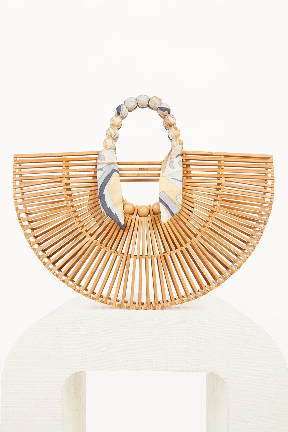 Cult Gaia fan ark top handle tote in natural.