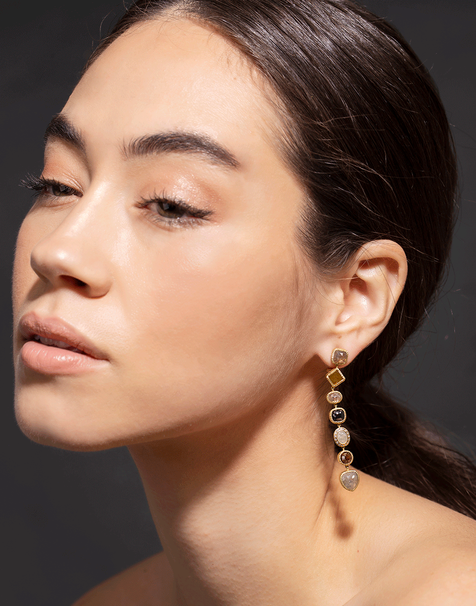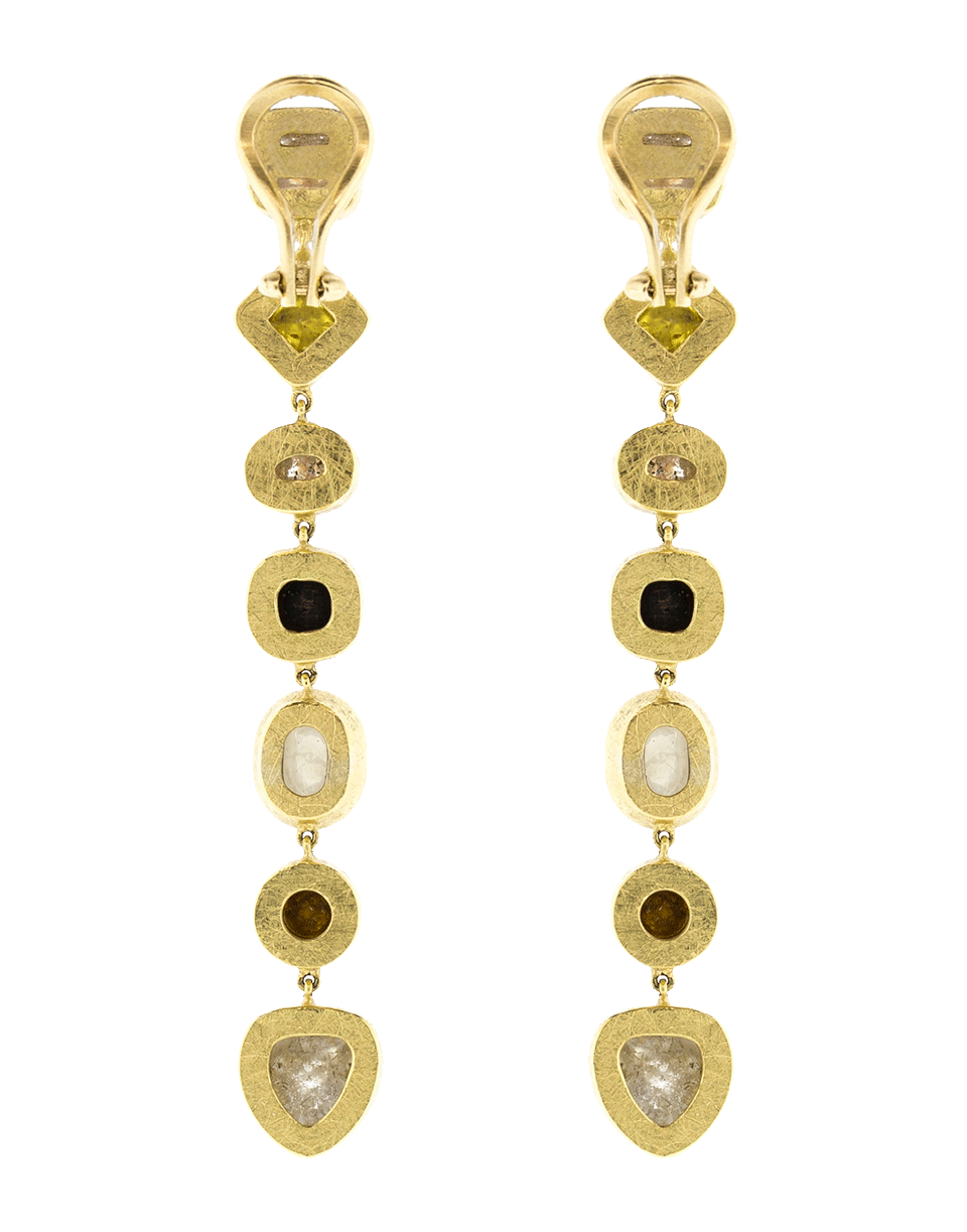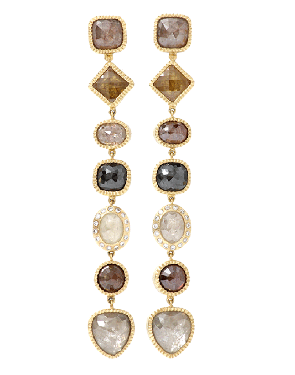 Fancy Diamond Drop Earrings With Rose Cut And White Brilliant Diamonds From Todd Reed