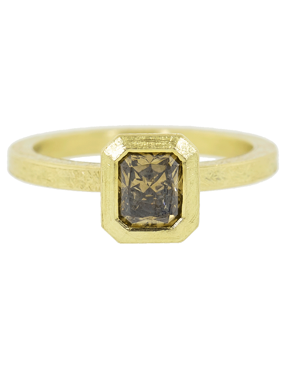 8mm fancy diamond solitaire ring set in yellow gold. This beautiful piece can transition with your day to night looks.
