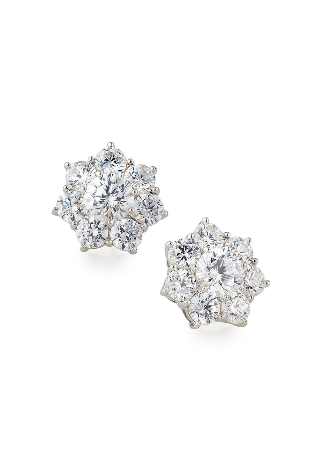 Fantasia by Deserio sparkling flower stud earrings in white.