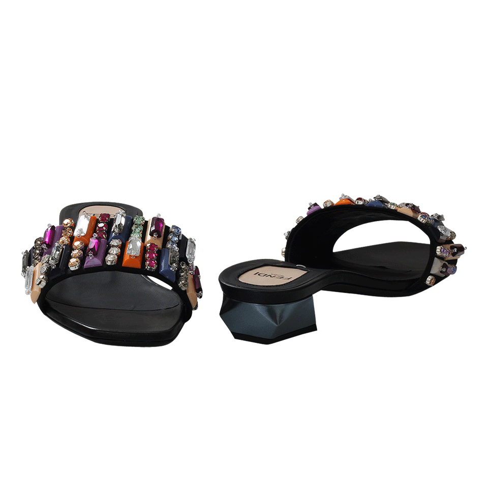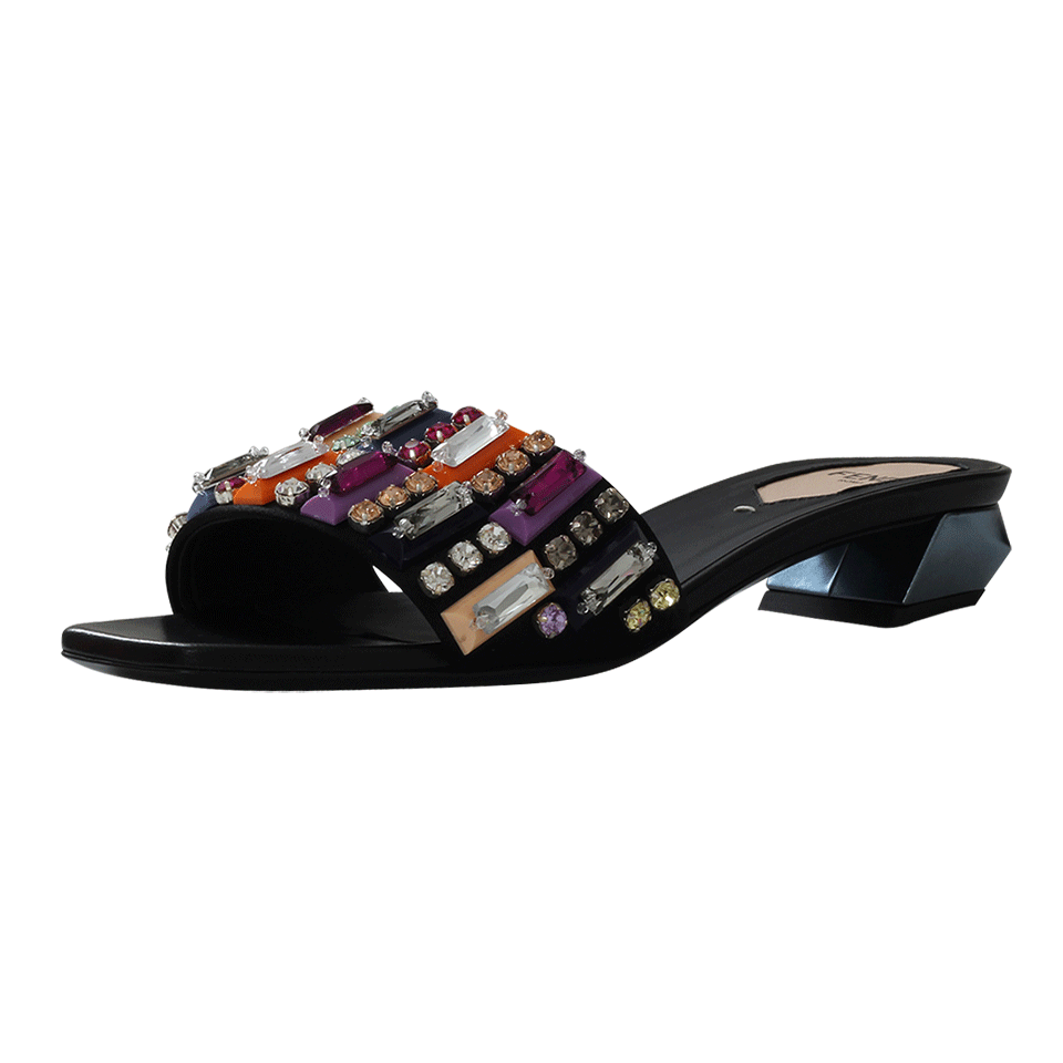 1.25" Geometric Heel And Cross Toe Strap, Squared Open Toe, And Jeweled Embellishments