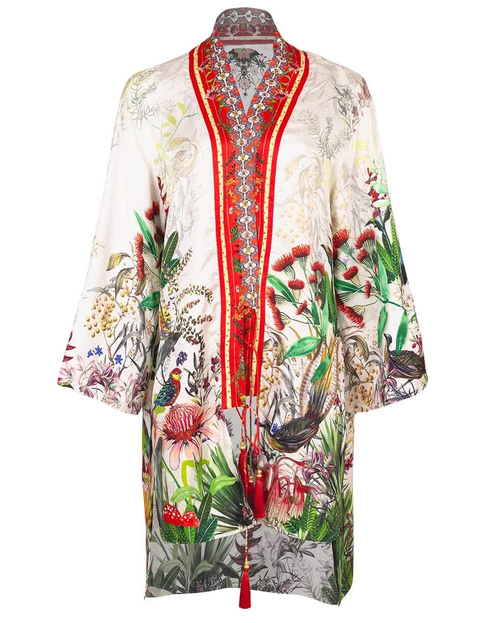 Faraway Tree Layer from Camilla is a kimono style beach coverup with hand placed crystal embellishement, dropped shoulders, side spilts, and an oversized fit.