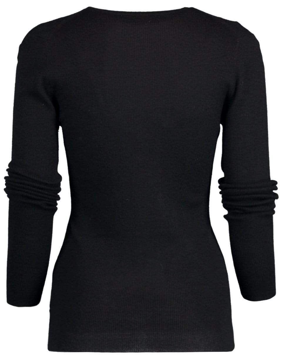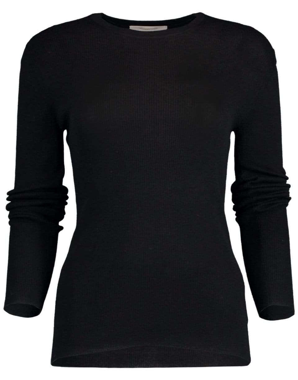 Black featherweight cashmere top from Michael Kors featuring a slim fit, long sleeves, and pull over style.