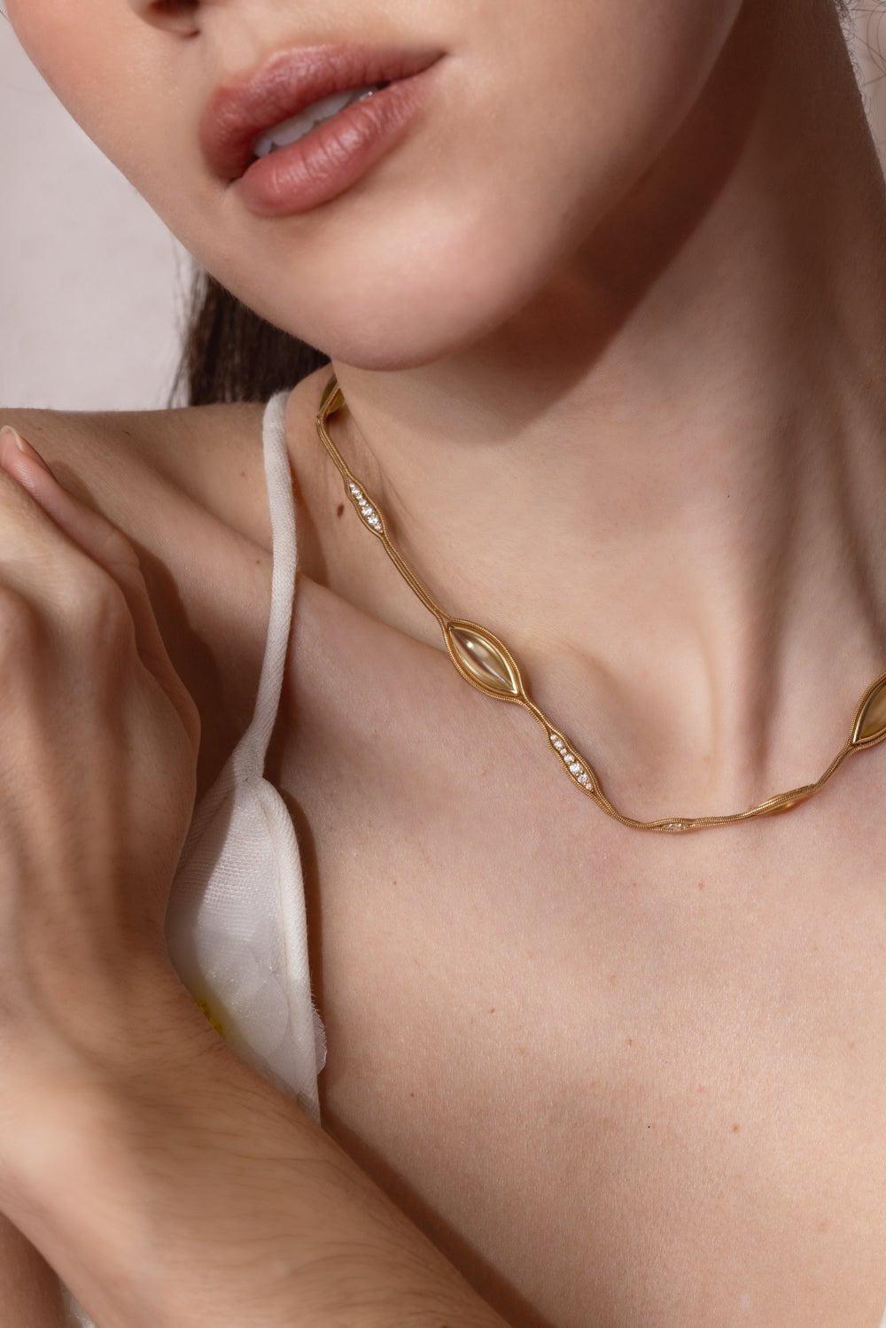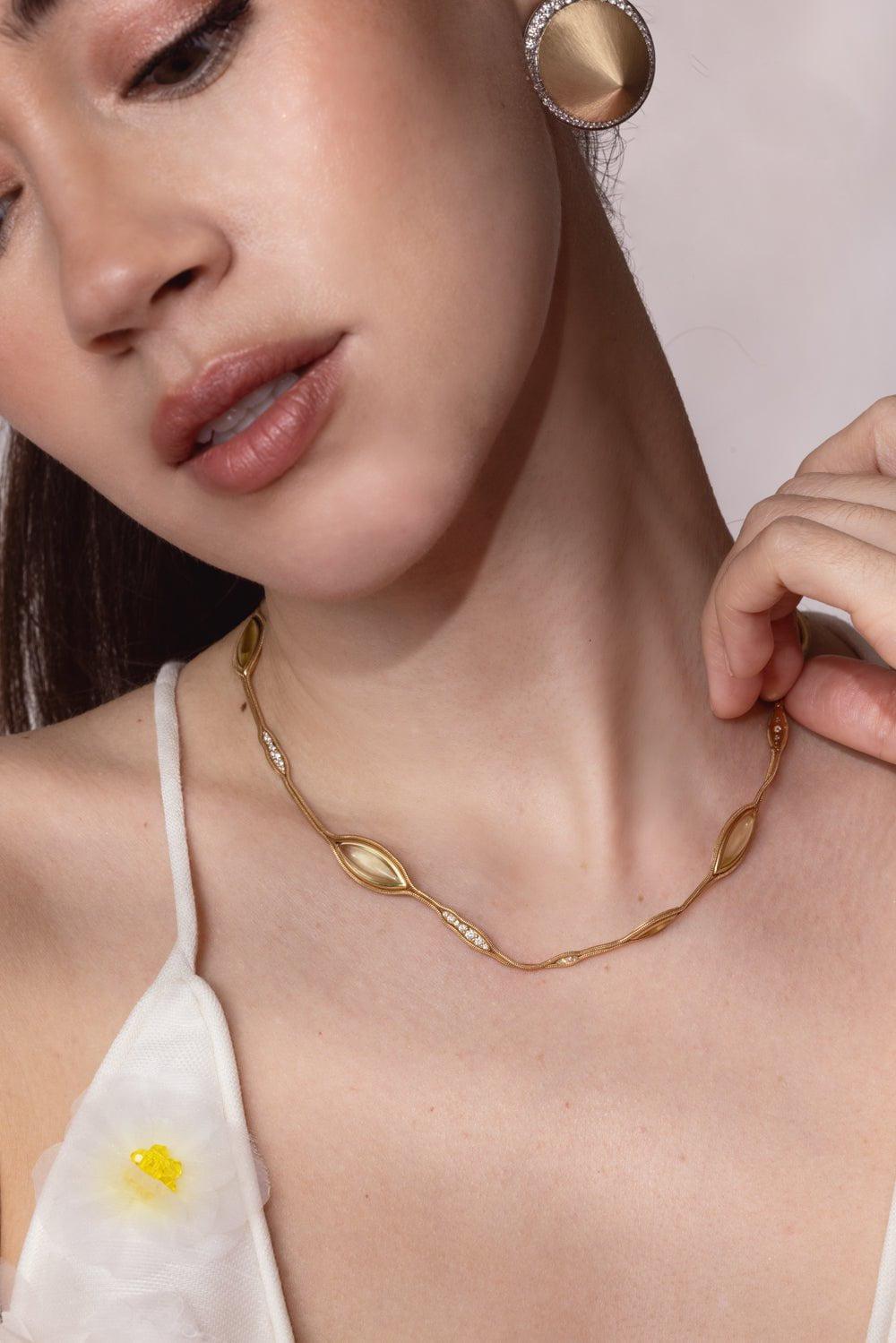 Fernando Jorge fluid diamond stone necklace in yellow gold.