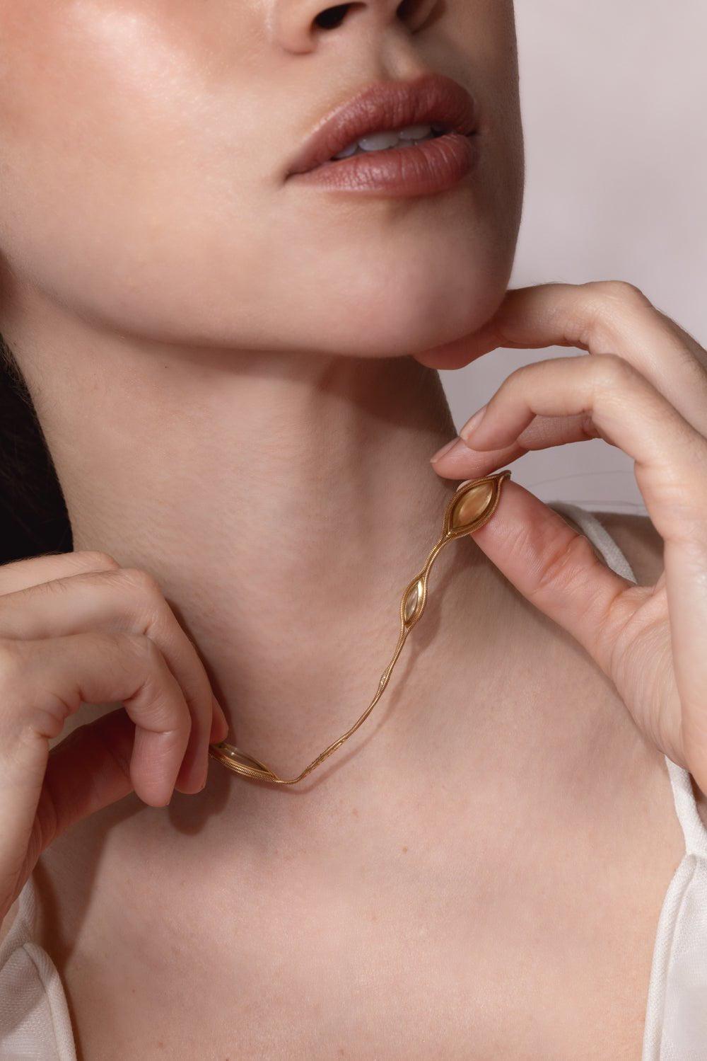 This necklace is a part of Fernando Jorge's Fluid Collection. ‘Fluid’ was designed as an extension of the female form, reflecting the overt sensuality and body culture of Jorge’s home country. Each piece is underpinned by an innate sense of the experimental.