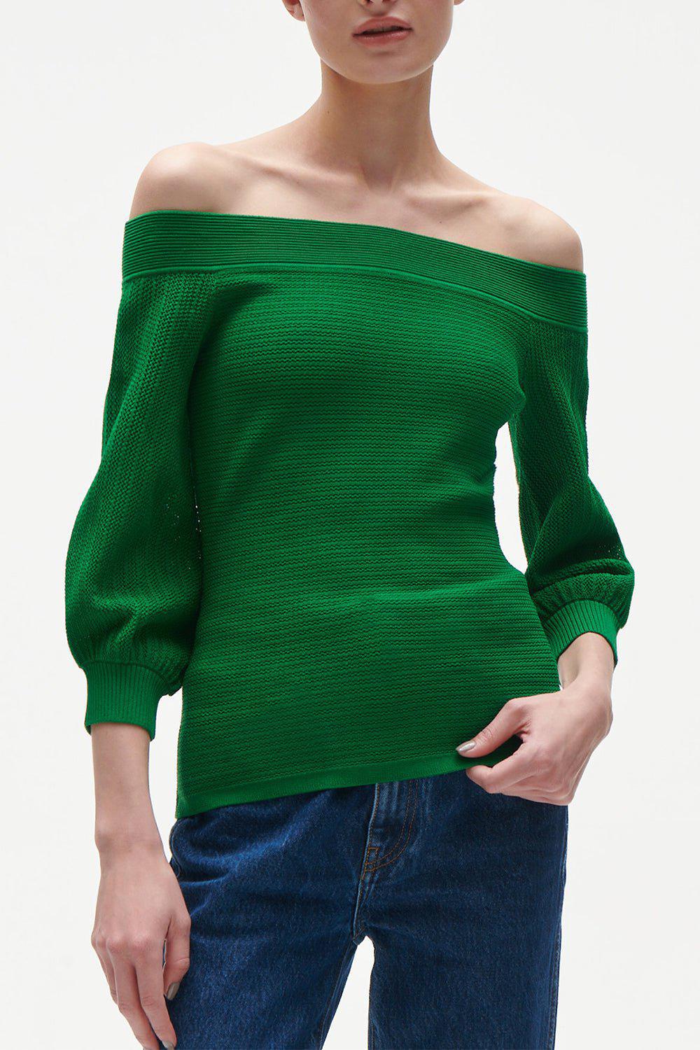 Figue gloria sweater in jungle green.