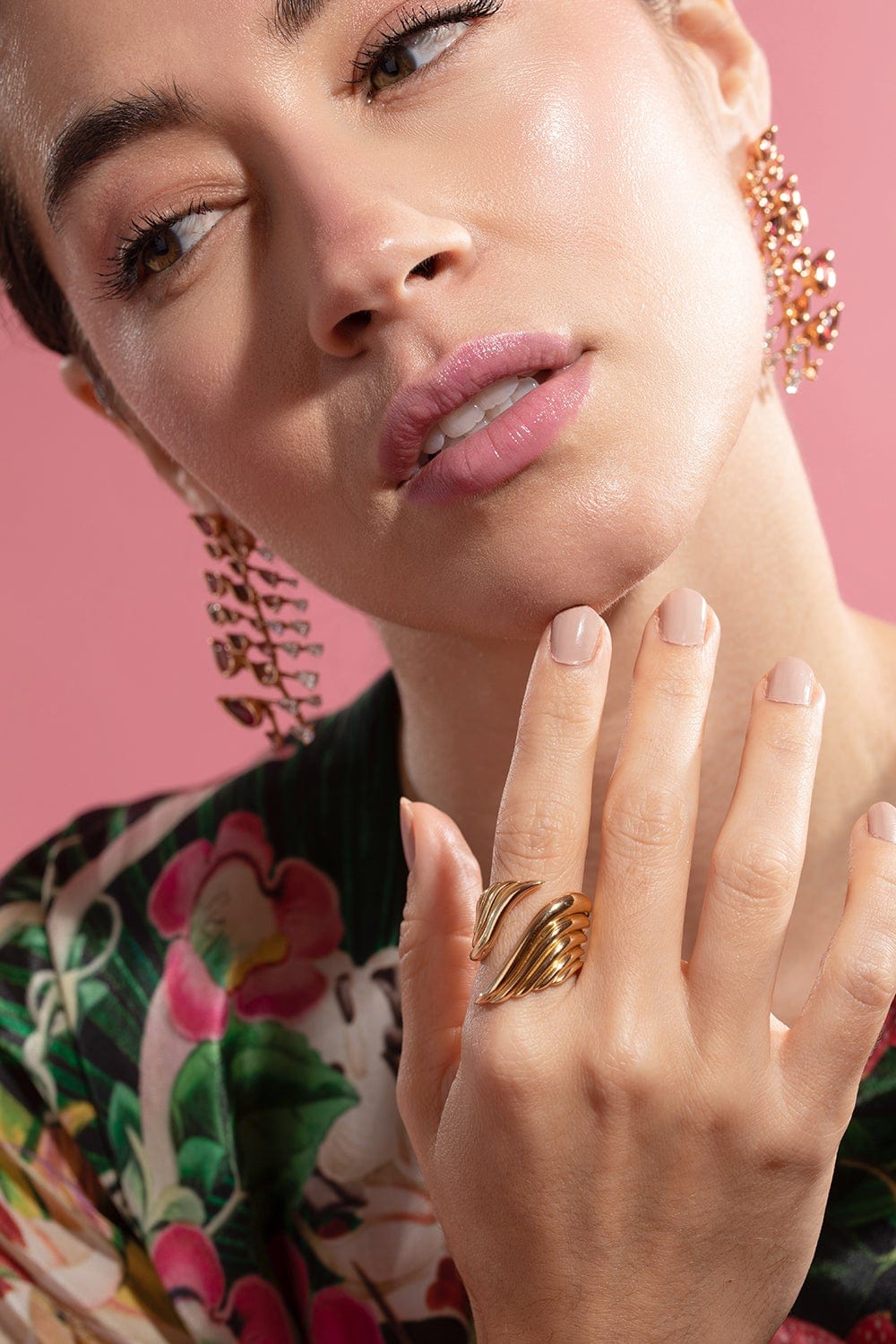 Fernando Jorge fire ring II. ‘Flame’ invites new energy into Fernando’s body of work. Diagonally placed pear-shaped stones and contoured lines invoke a dynamic, upward trajectory. Each piece complements the curves of a woman’s face and body, harnessing her strength and confidence.