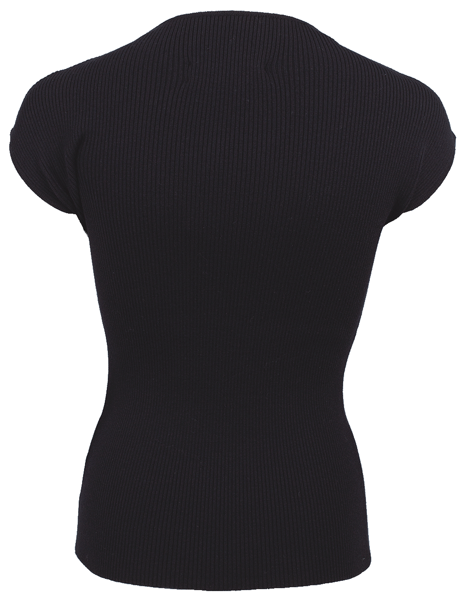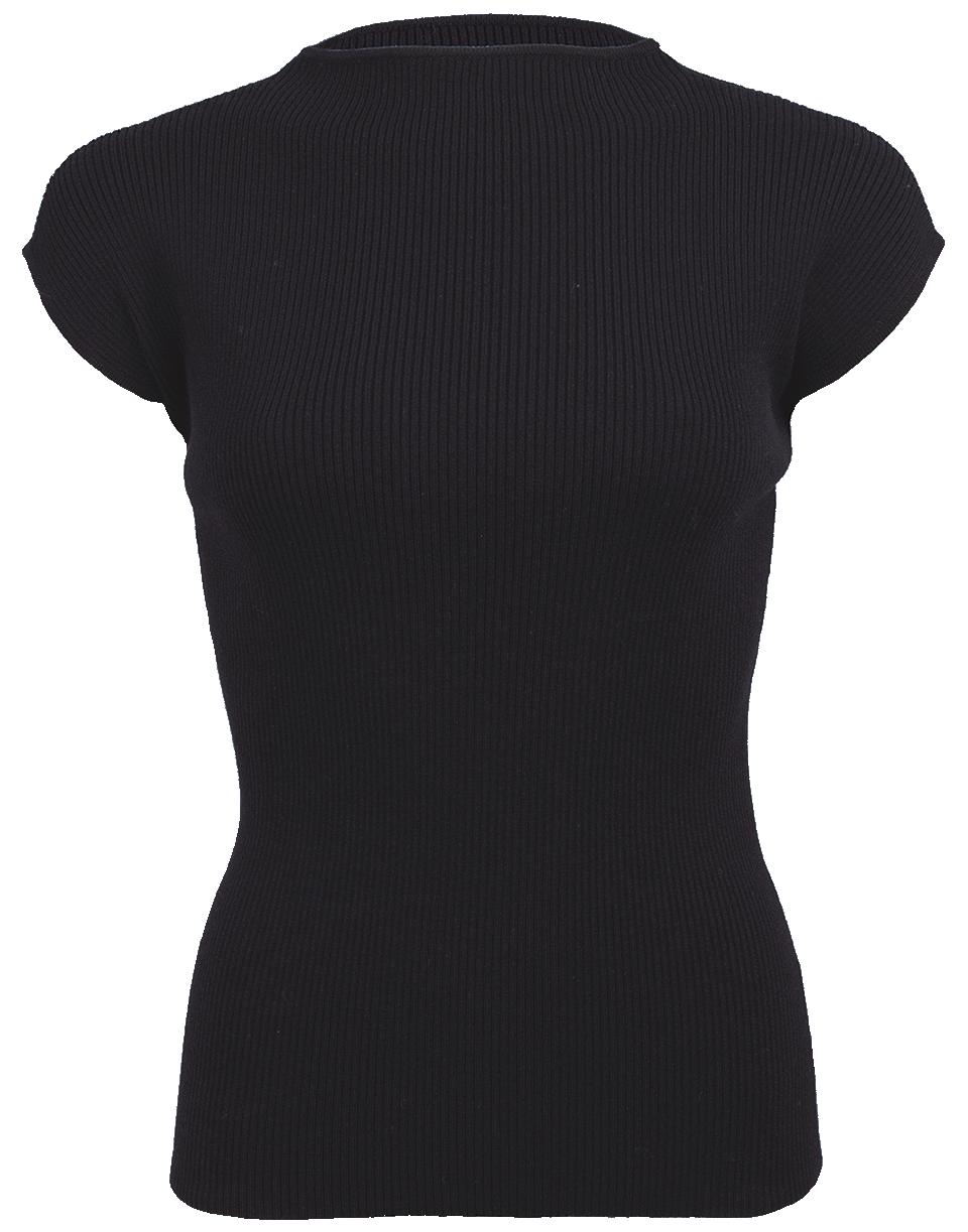 Versatile basic for any occasion, featuring a mock neck, cap sleeves, slim fit, rib details, and a pullover style.