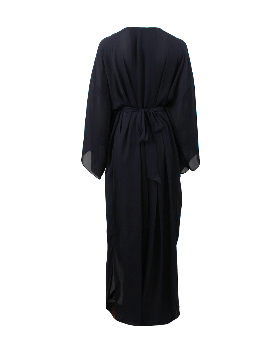 Flowing Silhouette And Sheer Overlay With Front Peep Hole Detail And Side Slits