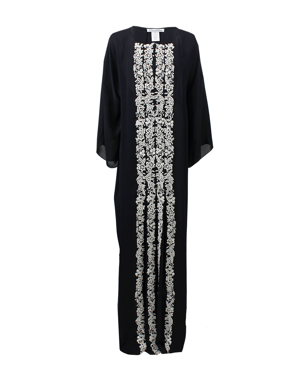 Floral Embroidered Caftan With Slip From Oscar De La Renta