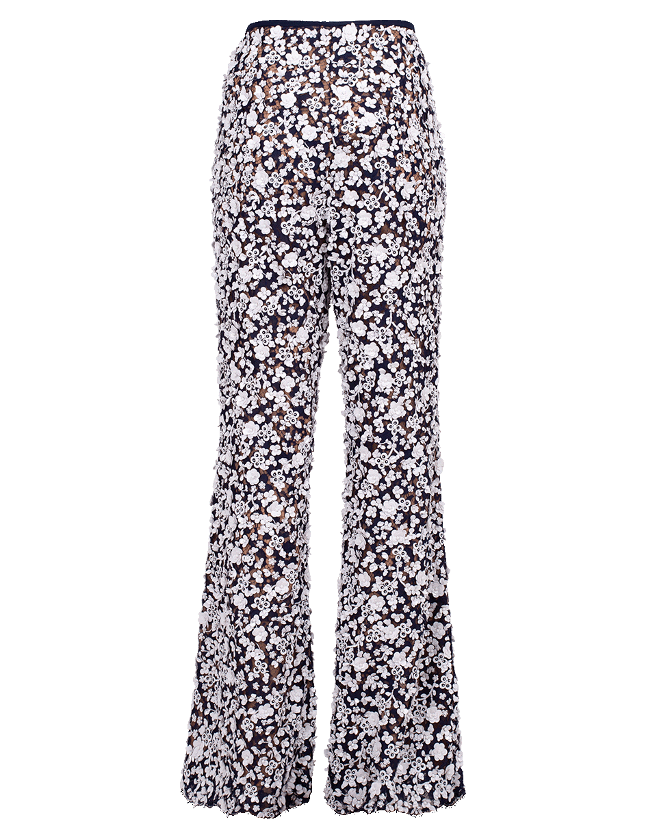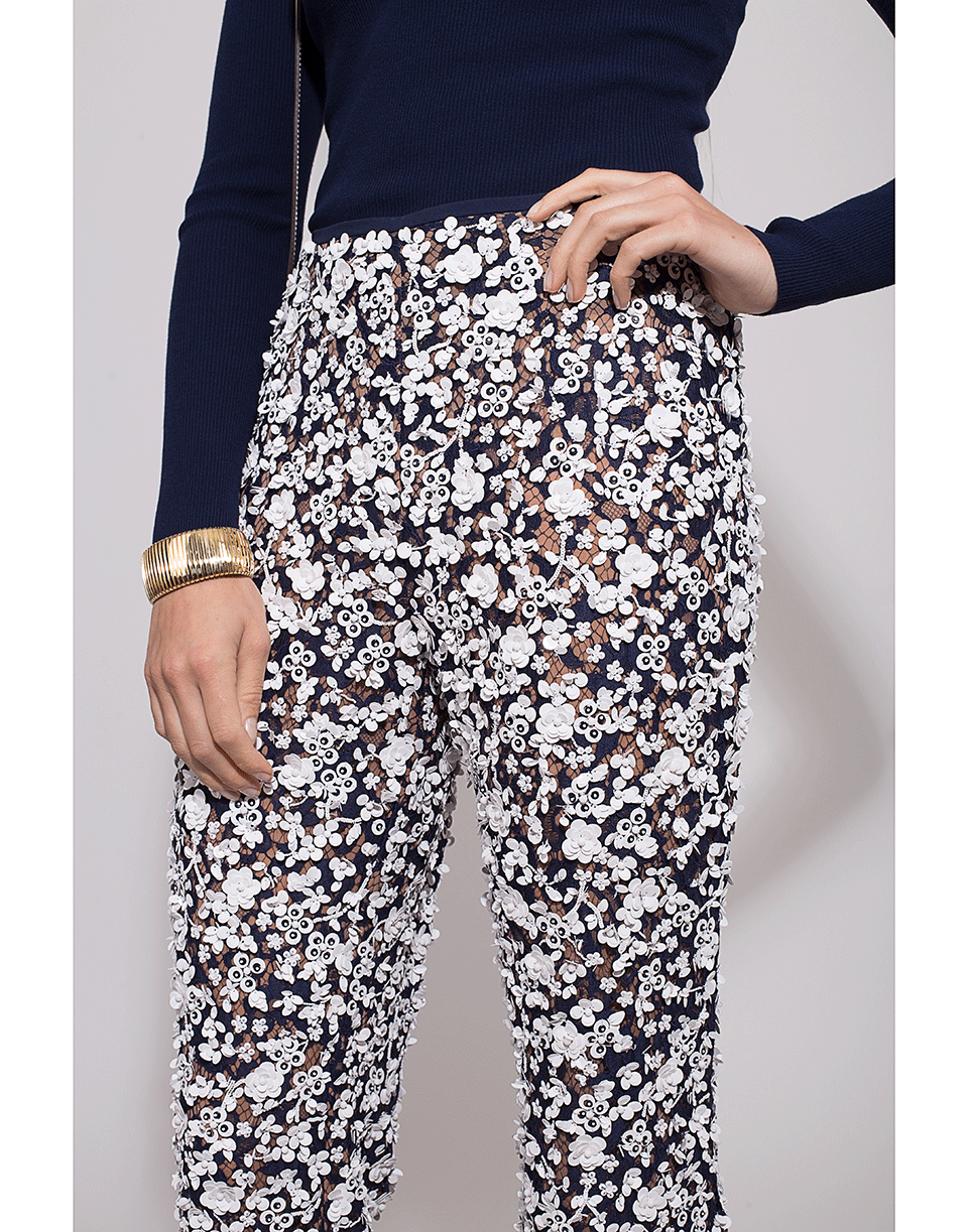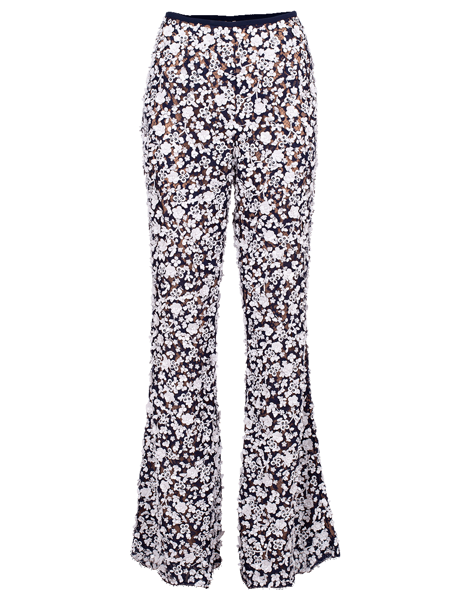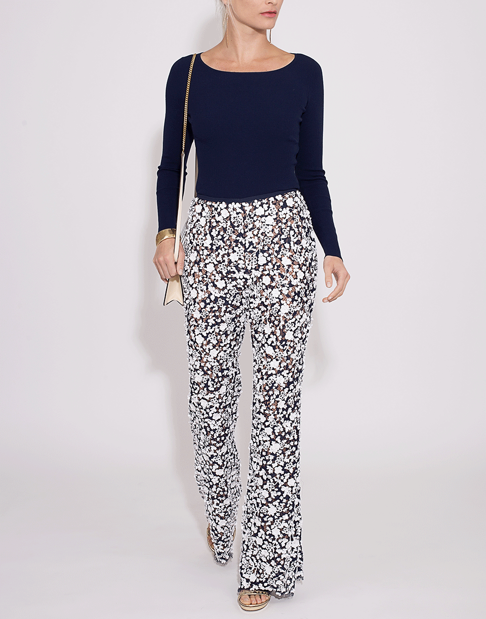 Cut from floral lace, these Michael Kors Collection pants feature a midrise waist with a fitted silhouette and flared bottom.