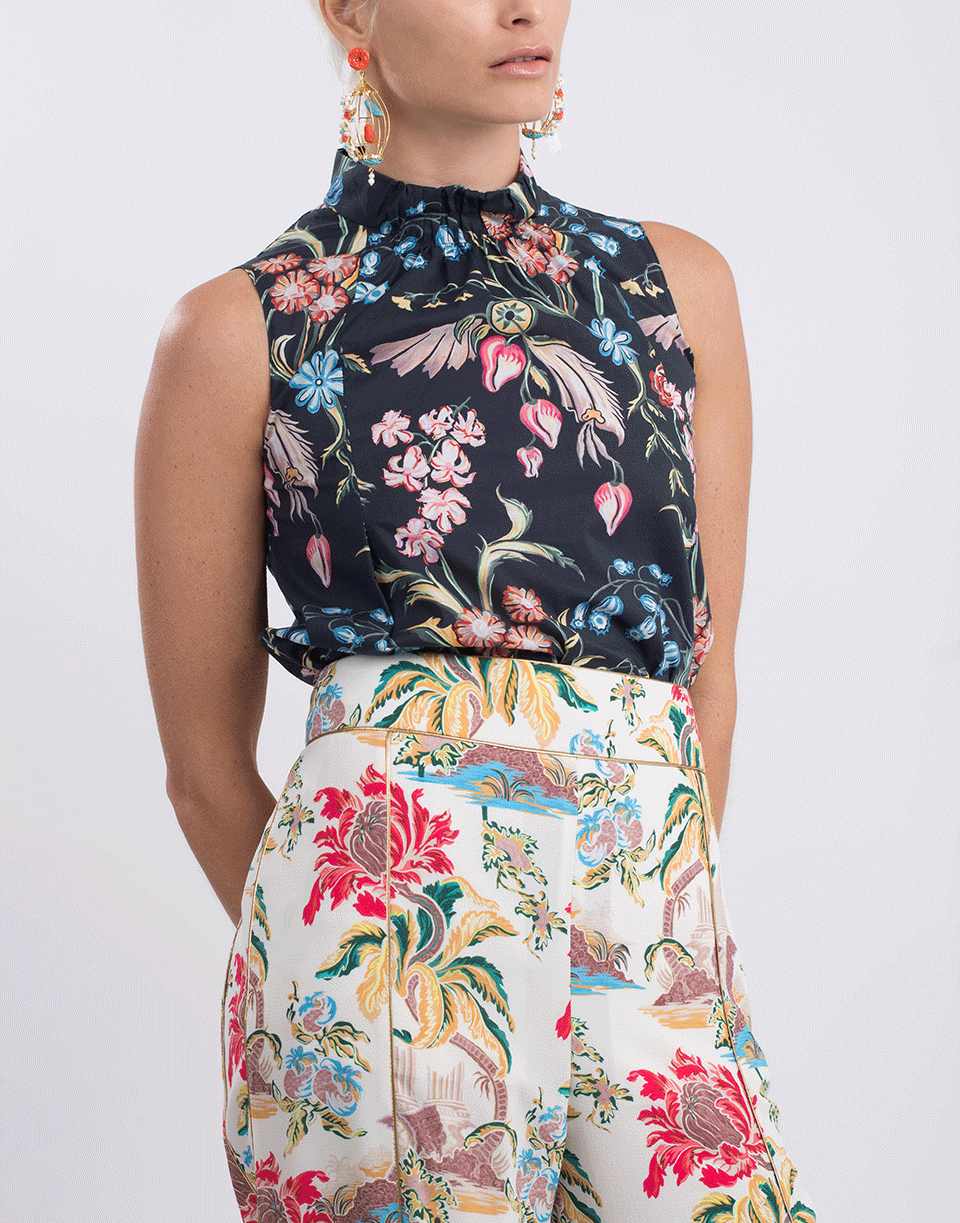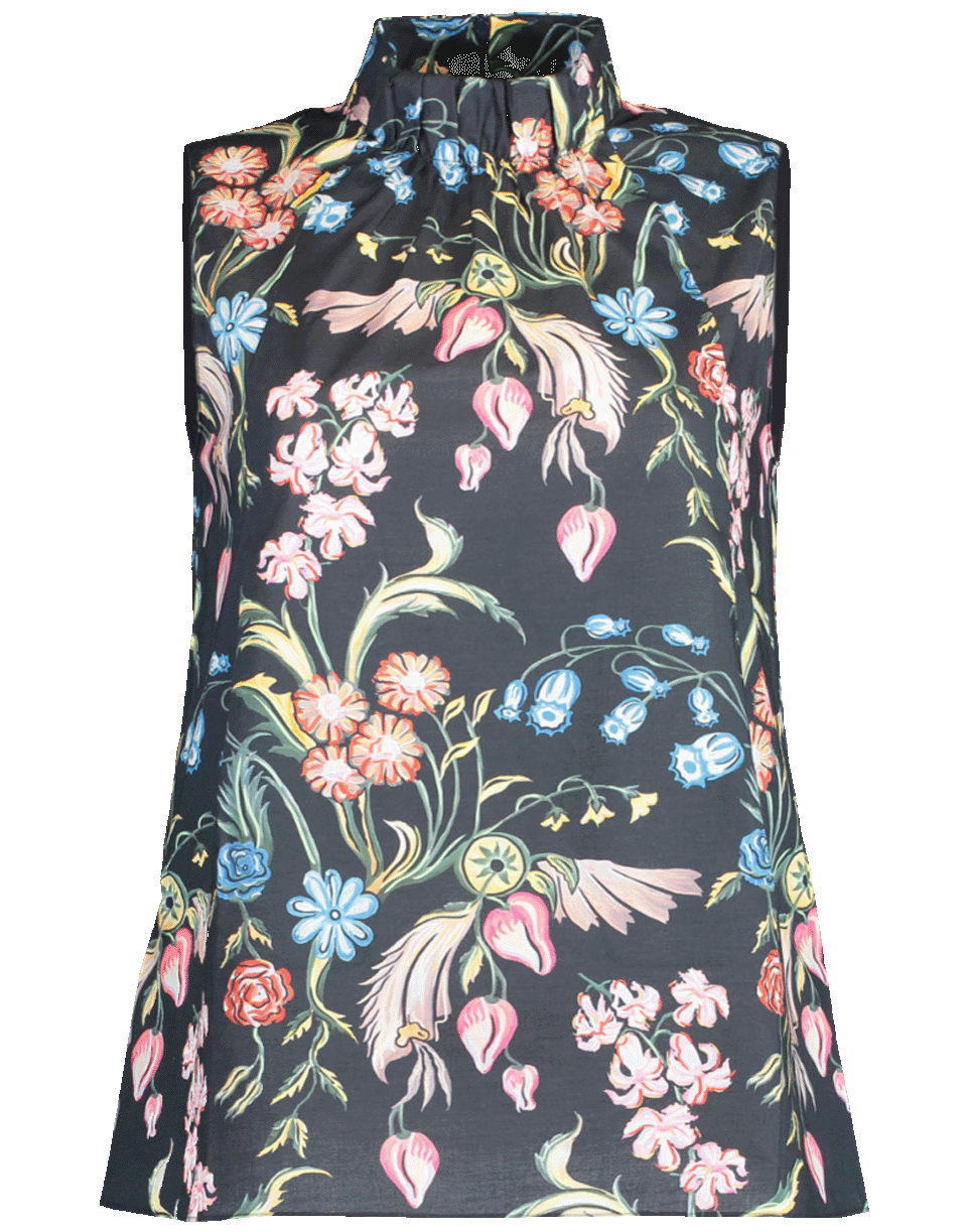 High-neck sleeveless top from Peter Pilotto with a floral pattern throughout and a concealed zip closure at back.