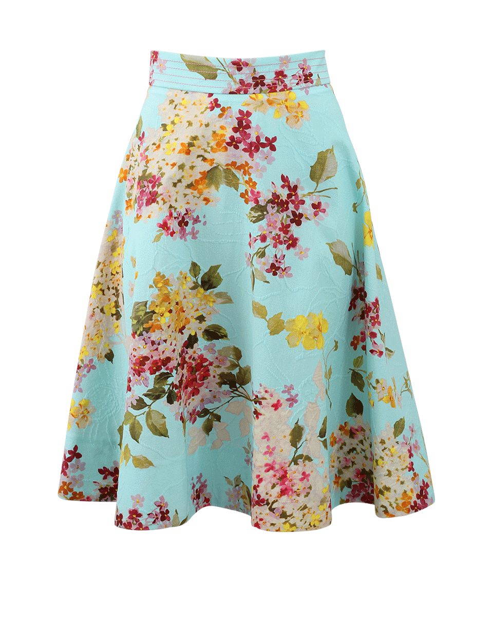 All-Over Floral Pattern, A-Line Silhouette And Knee-Length Cut