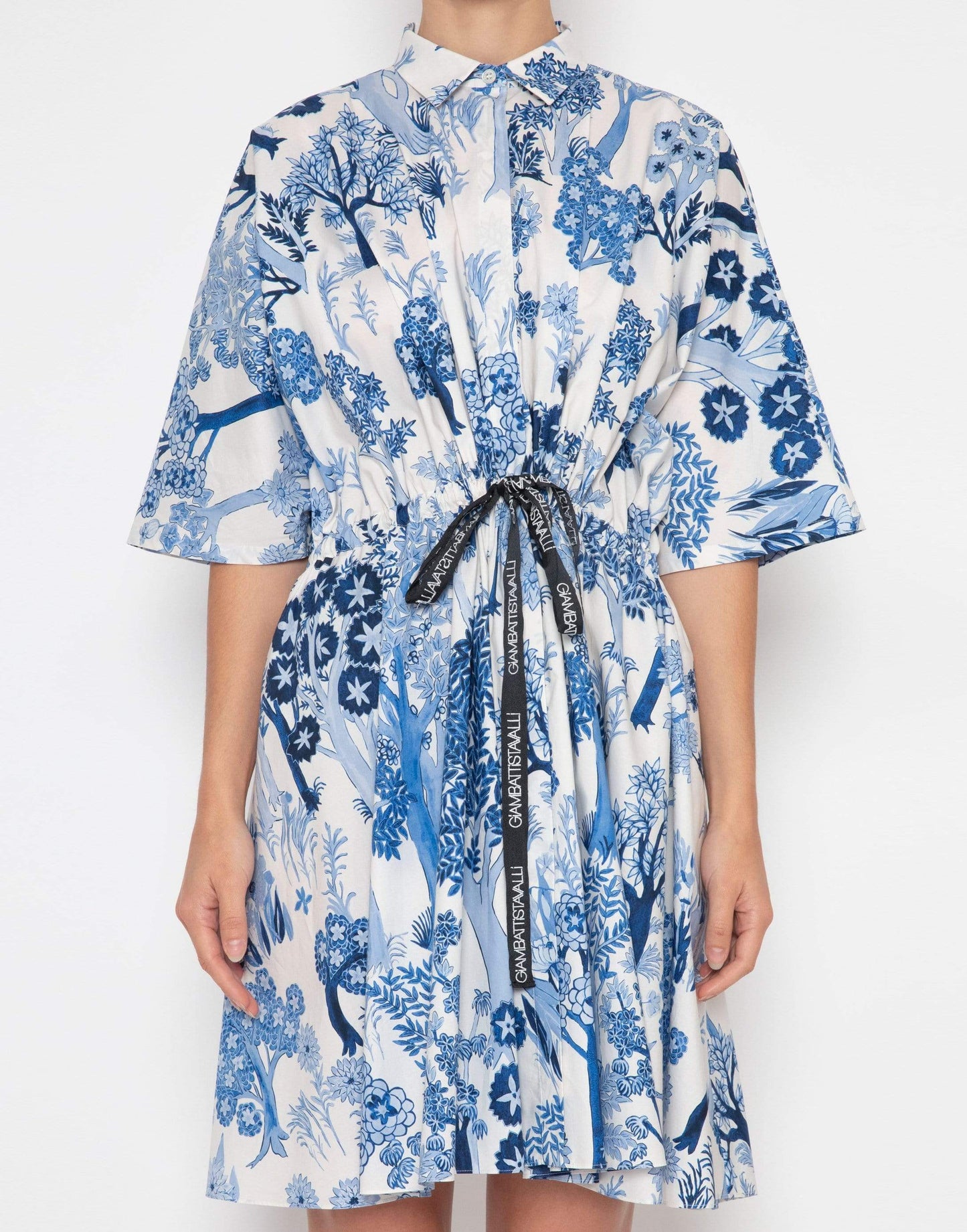 Mini floral dress by Giambattista Valli with Crewneck detail. Two flat front pockets. Pair with flat sandals and bright monochrome accessories.