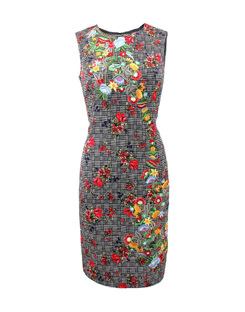 Jewel Neckline With Straight, Classic Silhouette And Embroidery Detail Throughout