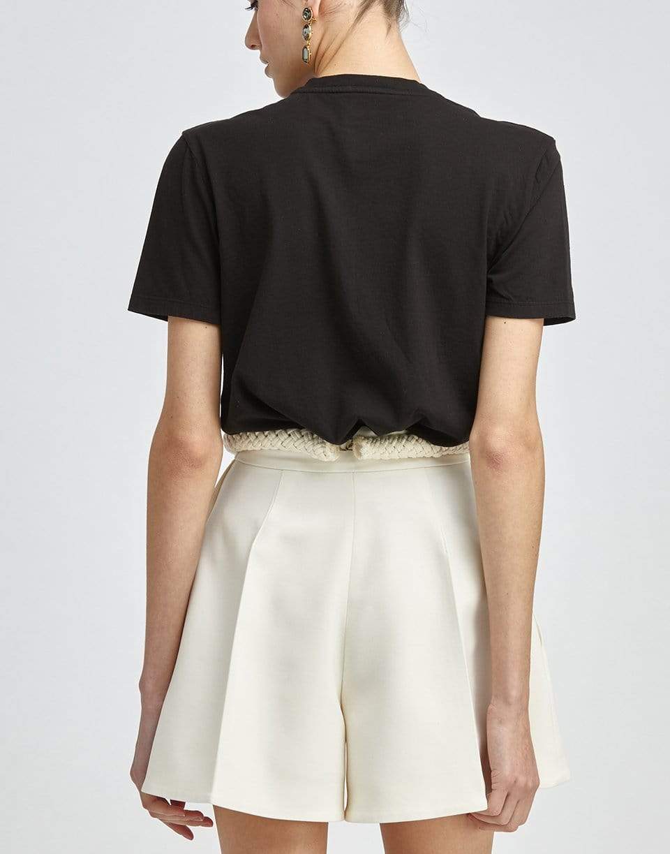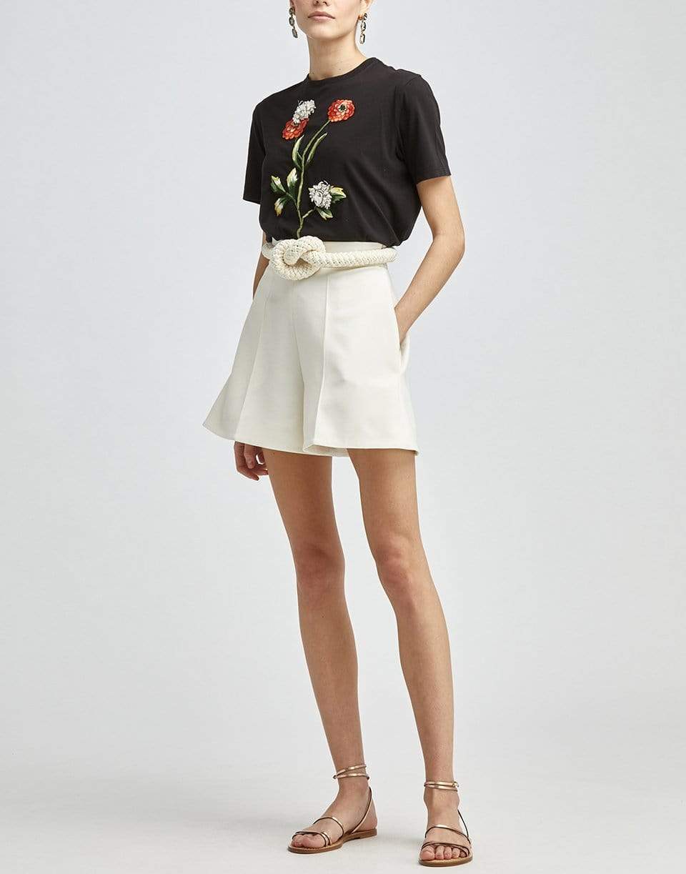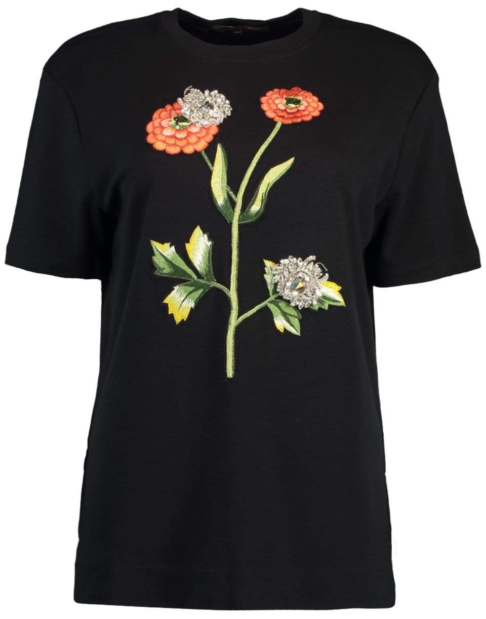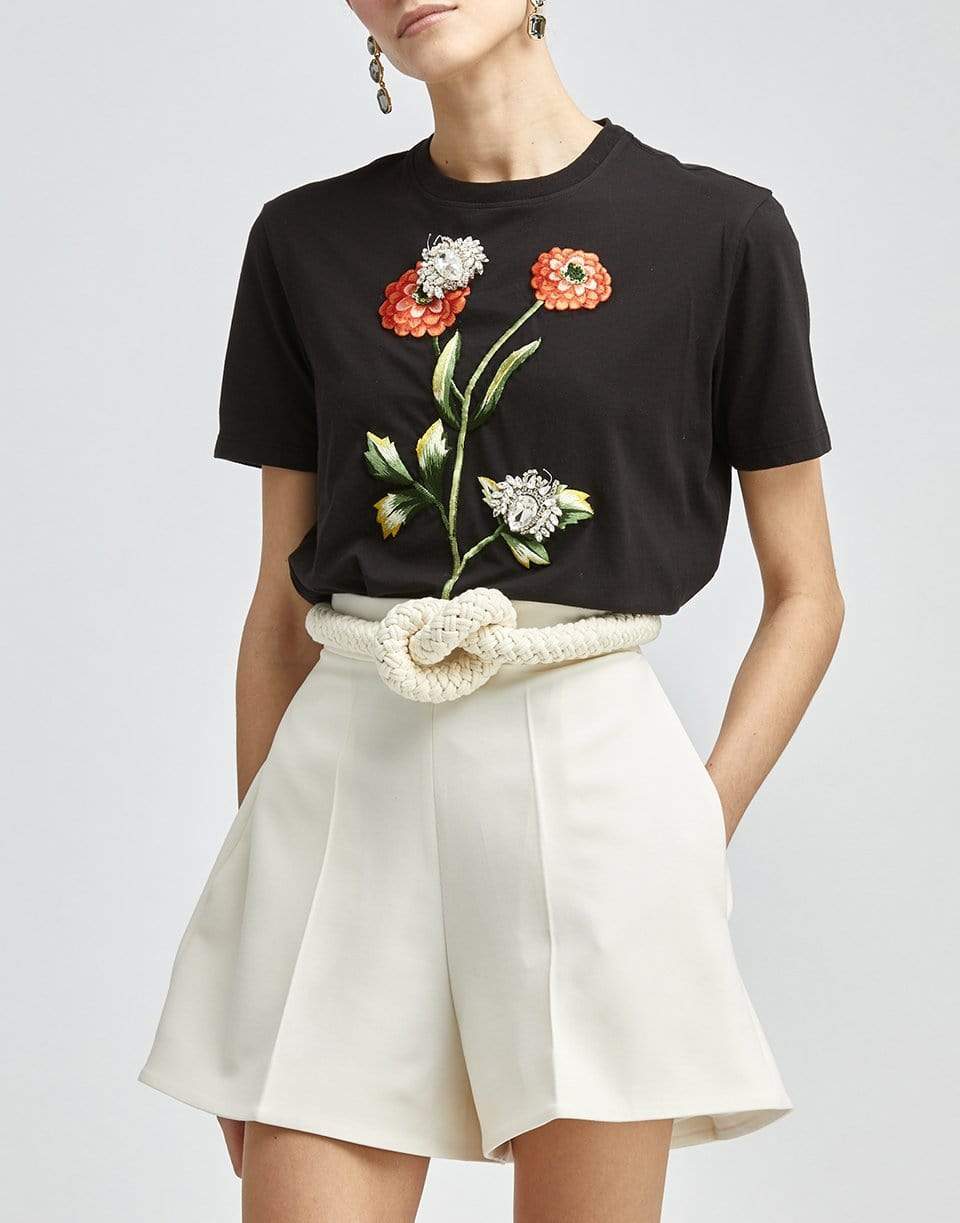 The Oscar de la Renta Flower Embroidered Tee is a playful take on a classic black tee, this style is detailed with intricate floral embroidery.
