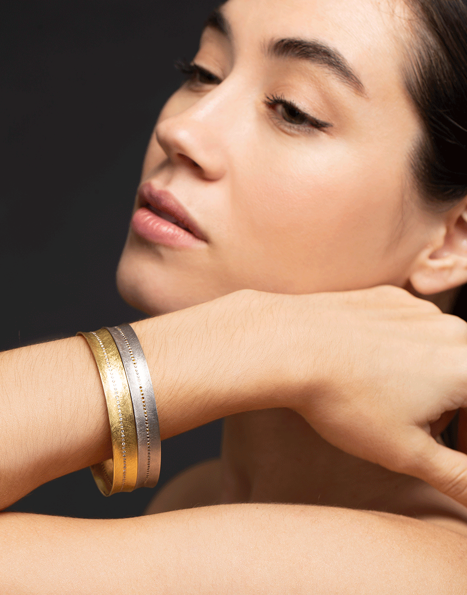 Todd Reed flush set brilliant white diamond and gold bracelet.